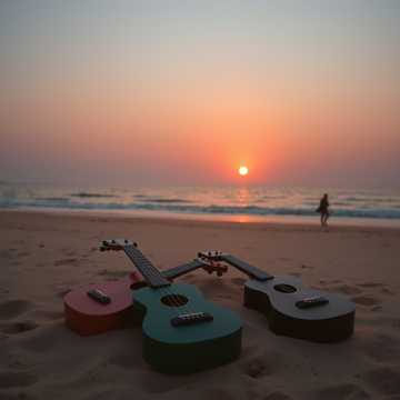 acoustic guitar, ukulele, djembe, jumbo djembe solo, upbeat, male vocals