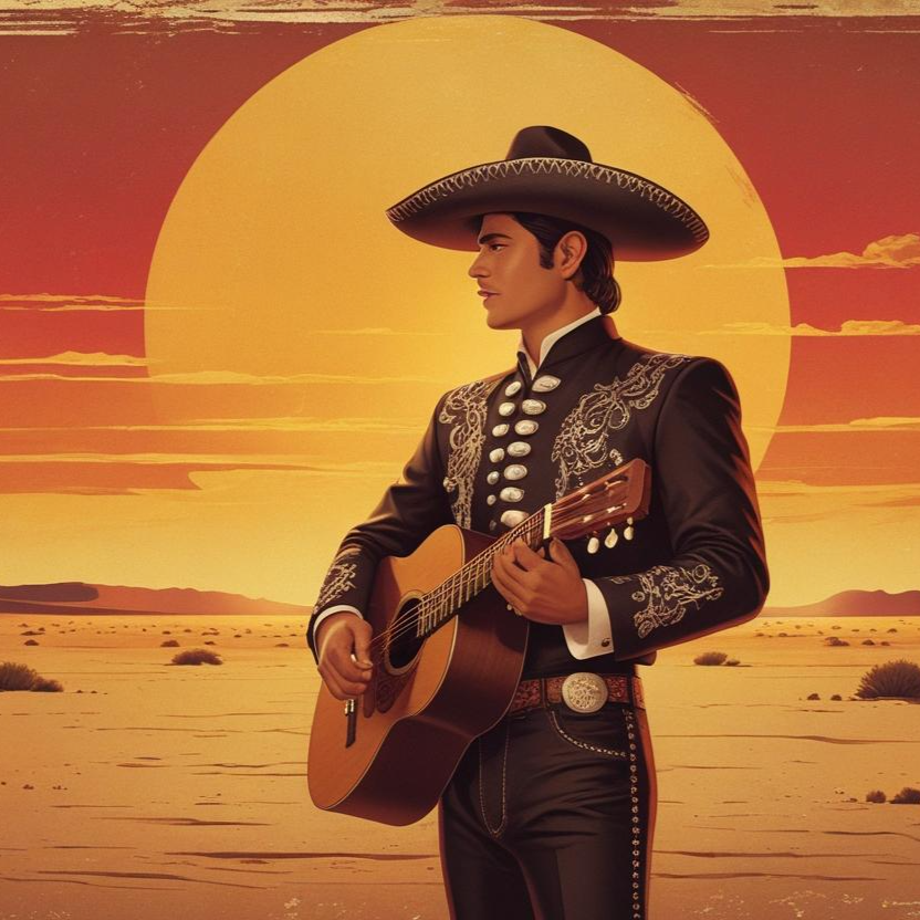 A traditional ranchera unfolds with plaintive acoustic and requinto guitars leading, joined by vihuela’s percussive drive, deep guitarrón mexicano, and mournful trumpets, Strings shadow the melody, Tempo swells in each verse, dramatic pauses accent key lines, powerful chorus erupts passionately