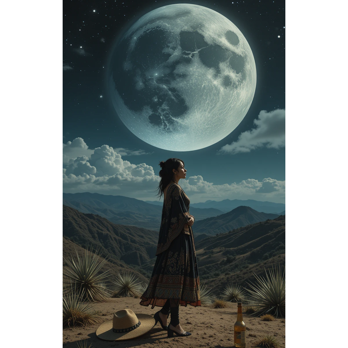 This Mexican folk ballad unfolds in a slow 3/4 funeral waltz, led by expressive female vocals with lush vibrato and dramatic vocal leaps, echoing bird-like wails, A finely fingerpicked acoustic guitar anchors each verse, joined by weeping violin lines and restrained mariachi trumpet, The arrangement swells subtly in the chorus as sorrowful vocalizations flow over dynamic instrumental crescendos, intensifying the sensation of yearning and solitude, Instrumental breaks allow violin and trumpet to echo the voice’s pain, while delicate dynamics conjure midnight silence, mountain air, and the ache of distant stars