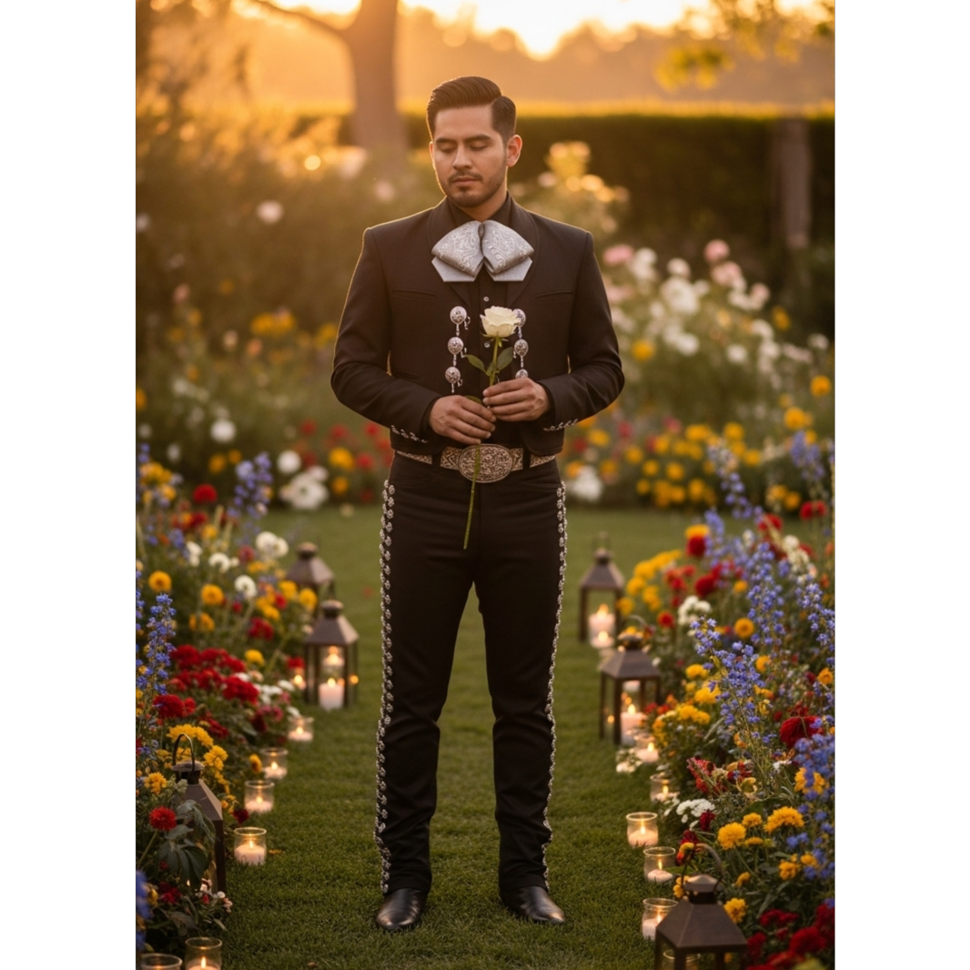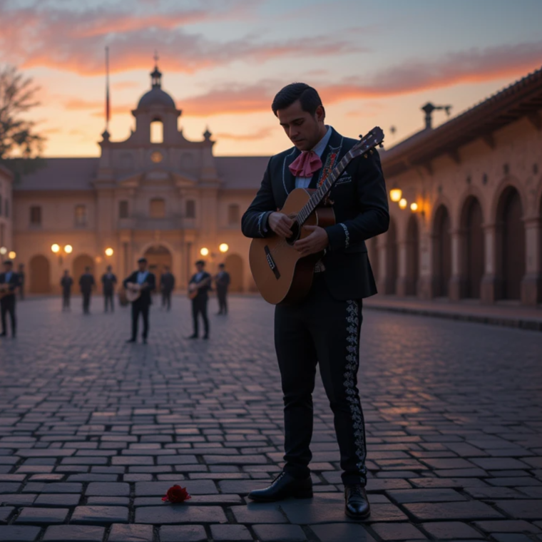 A traditional mariachi song at a moderate tempo (85–95 bpm) opens with guitar, vihuela, and guitarrón, layering in rich violins and bold mariachi trumpets, Heartfelt verses highlight warm, expressive male vocals, building to a dramatic, soaring chorus, Classic ranchera structure anchors the lush, romantic and nostalgic atmosphere, ideal for serenades and stirring performances