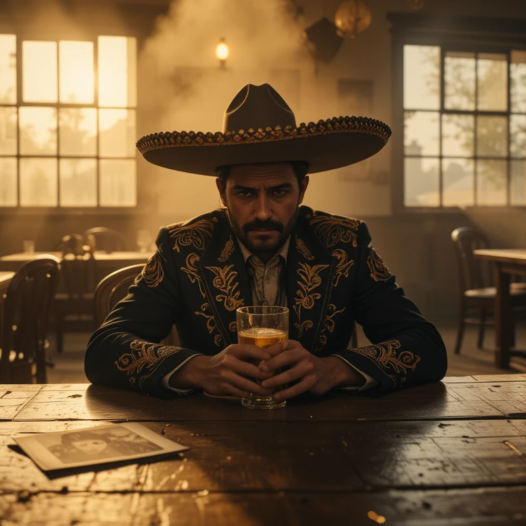 A traditional ranchera mexicana unfolds with deep emotional intensity and heartfelt storytelling, The rhythm moves in a slow 3/4 waltz, led by resonant acoustic guitars, vibrant vihuela strumming, and the deep pulse of the guitarrón, Layered violins sing with mournful beauty while bold trumpets rise in sweeping, passionate phrases, The male vocal is strong, expressive, and warm, filled with nostalgia, pride, and sorrow, Every phrase carries long sustained notes, subtle vibrato, and dramatic pauses that let emotion breathe, The mix should sound authentic and organic, evoking a rustic Mexican countryside, old cantinas, and moonlit haciendas, The tone is melancholic yet dignified, balancing pain and strength, The overall atmosphere is cinematic, heartfelt, and timeless — capturing the spirit of loss, love, and devotion that defines the classic ranchera tradition, with mariachi instrumentation enveloped in natural reverb and rich acoustic warmth