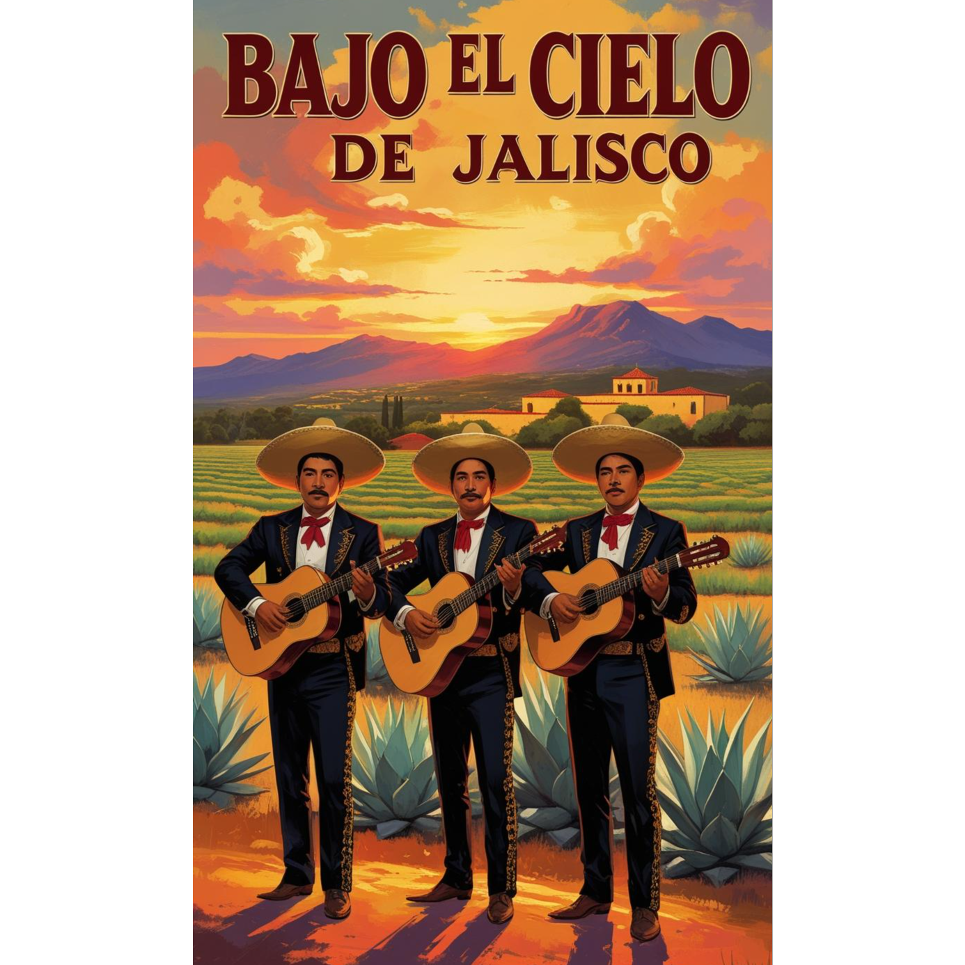 A romantic Ranchera romántica unfolds with acoustic guitars establishing a gentle, rhythmic pulse, Rich male vocals soar above sweeping violins and expressive trumpets, lyrically weaving Jalisco’s romantic imagery, The arrangement gradually layers guitarrón and vihuela, adding depth, Lush instrumental interludes, call-and-response trumpet phrases, and dynamic swells highlight the mid-tempo passion, letting verses and chorus breathe, The song builds with heartfelt intensity, allowing space for violin and trumpet solos, creating a cinematic, nostalgic journey before the tender, lingering outro, The track extends beyond 3 minutes, pacing emotional storytelling with poetic, melodic instrumentation