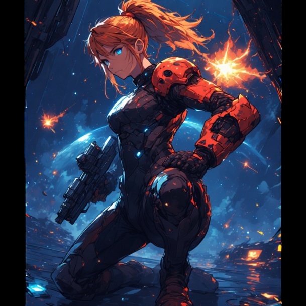 strong female voice, Alternative Metal, Goth Metal, cyber, space, dark metal, 90s electronic, dark, sci-fi, intense, aggressive, emotional, Boss Fight, best quality, clear, dark orchestra, science