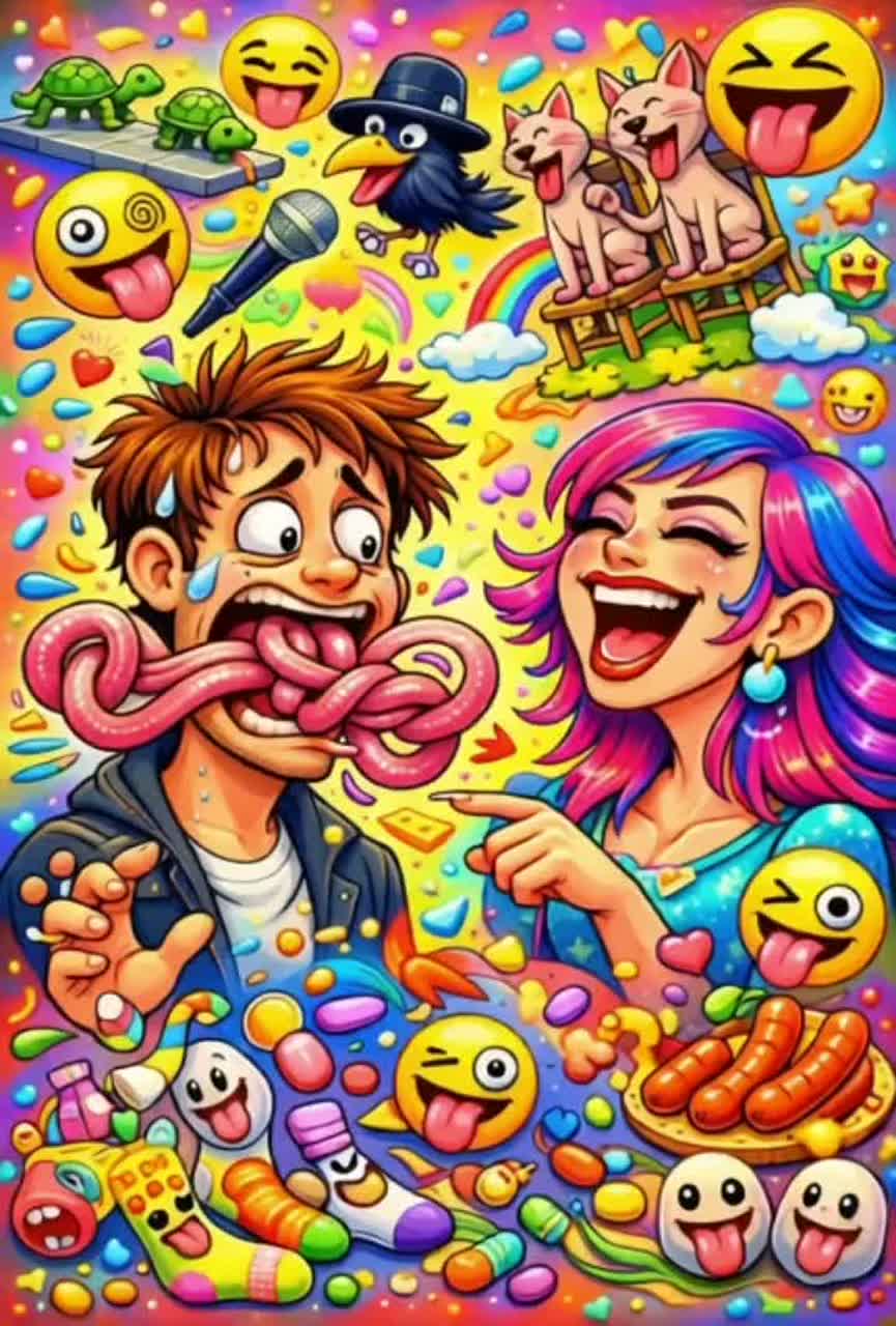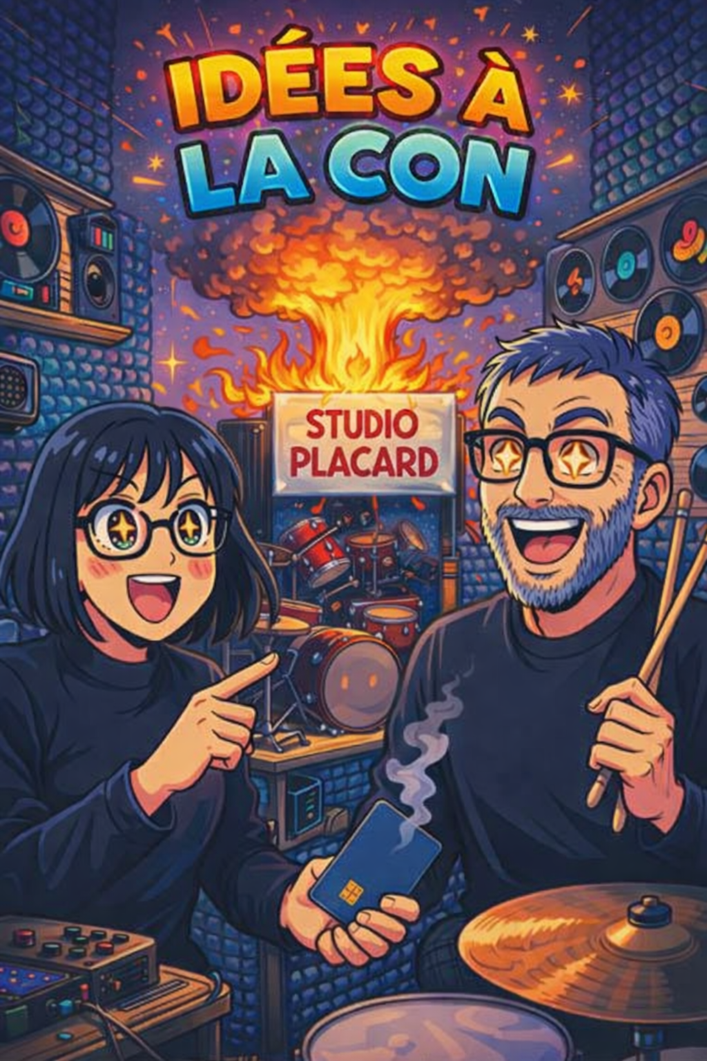 Un beat électro-rap burlesque fuse avec une bassline funky et rebondissante, percussions cartoon percutantes, hi-hats vifs en stutter, synthés plastiques aux bips et montées de jeux vidéo, Les voix déconcertent : attaque absurde, glitchs, scratchs, blips comiques, BPM monte à chaque couplet pour un final ultra-rapide et théâtral, rires et ruptures accentuant l’énergie ludique et la tension jusqu’à l’explosion délirante