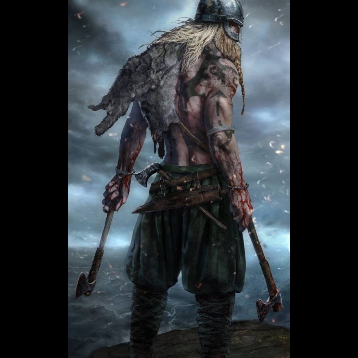 dark Scandinavian ethnic pagan folk, epic war drums, masculine Viking choir
