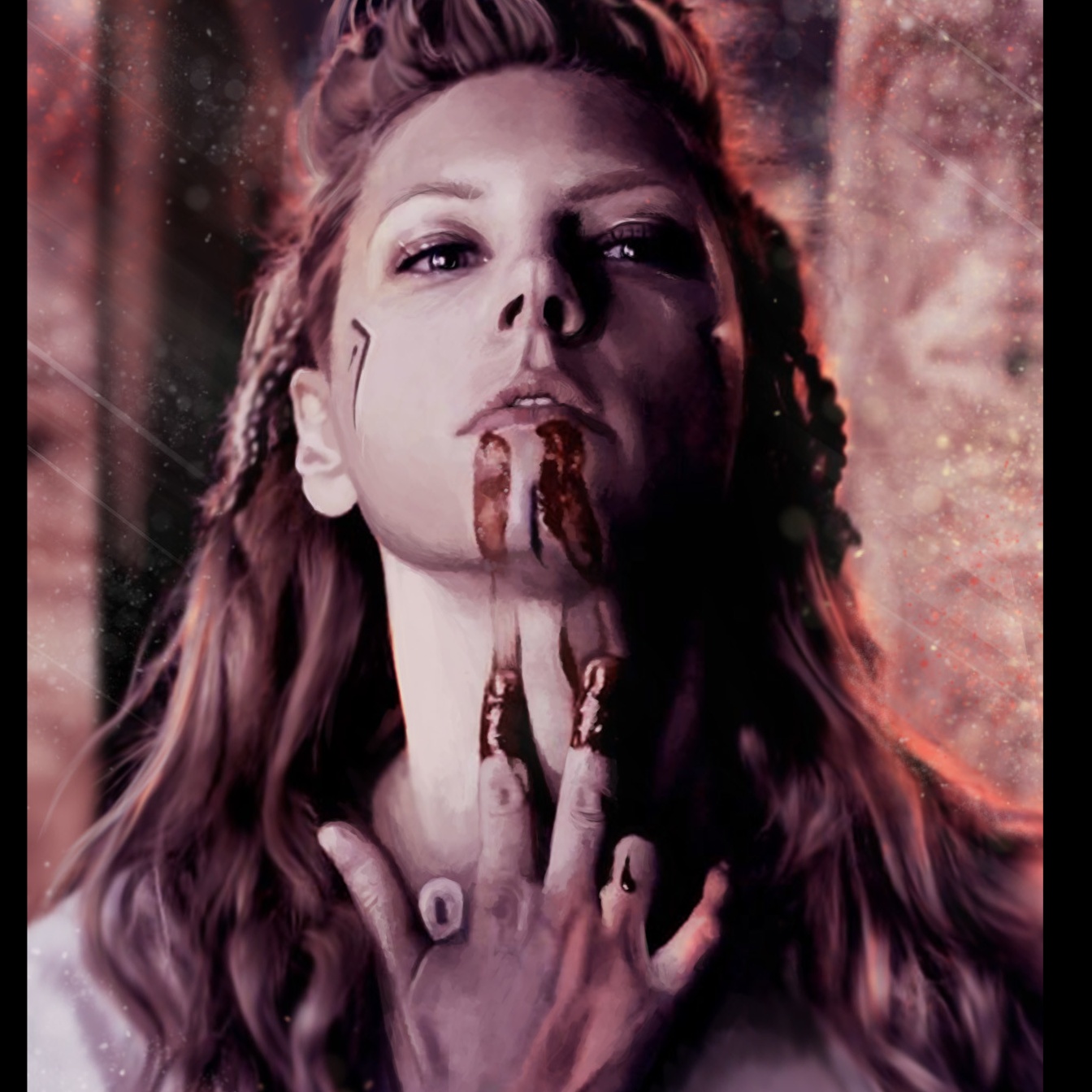 Ritual Nordic chant rooted in the rune Naud, evoking the struggle between flame and frost, Harsh winds sweep through bone-chilling atmospheres as wardrums pound like a hammering heart, Distorted tagelharpa scrapes against low-pitched langspil, with deep vocal drones and ash-filled breath, Female and male voices chant from within the darkness — whispering of hunger, fire, and ancient pain, Fire crackles beneath glacier winds, as the pulse of survival awakens the blood, This is Viking ritual at its rawest — elemental, stripped, powerful, invoke need, endurance, and the sacred burn of Naudir