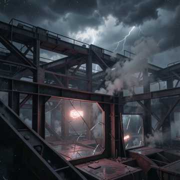 industrial metal, melodic industrial metal, downtuned palm-muted guitars, modular synth bass, metallic percussion, programmed blast beats, distorted bass guitar, industrial noise layers, vocal chop hooks, parallel compression, plate reverb, tape saturation, breakdown drops, build-up tension, dark catharsis, 140 BPM, call-and-response riffs, sub-bass sidechain