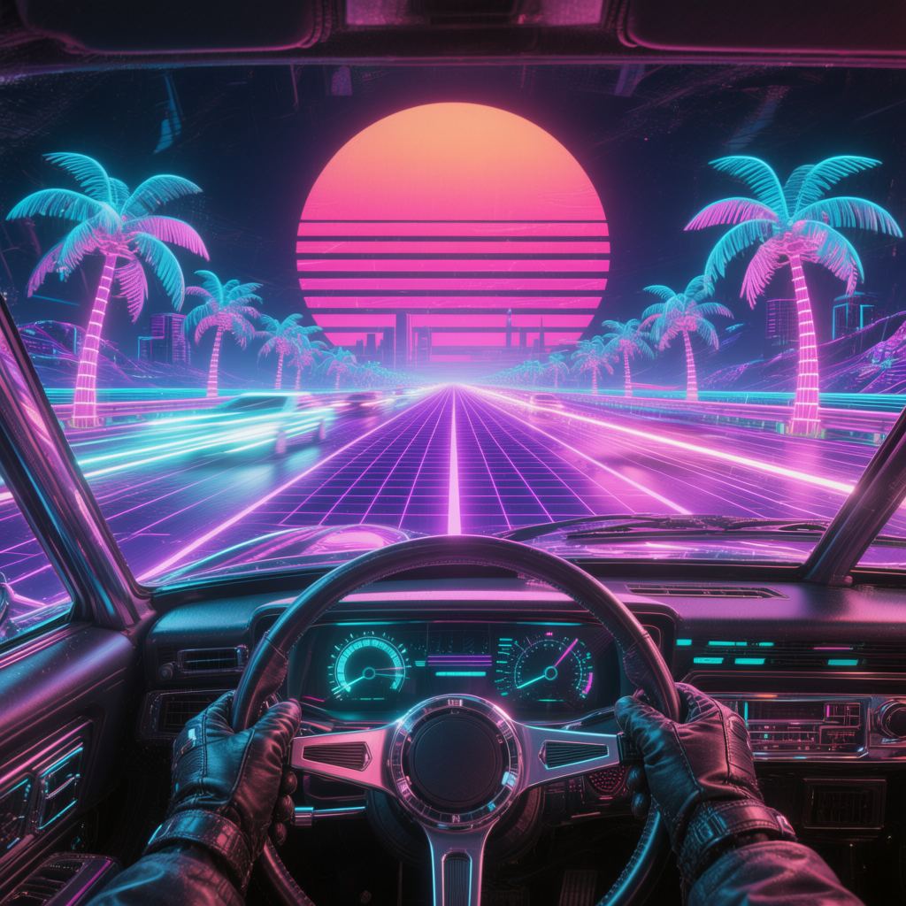 Opening with lofi cassette crackle and deep analog pads, steady retro drum machines lay the foundation, anchored by pulsing synth bass, Lush atmospheric melodies weave through glassy arpeggios and airy leads, while gated reverb snares and swirling ambient FX echo the endless night, The arrangement builds layers for cinematic movement, dissolving into a vaporous outro as dawn approaches