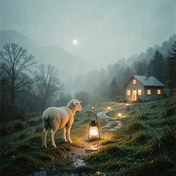emotional chinese pop ballad mature male vocal deep and warm tone piano and light acoustic guitar minimal arrangement gentle drums intimate and reflective atmosphere not loud chorus expressive vocal style similar to Cantopop, Mandopop and gary chaw storytelling style poetic lyrics worship song about the good shepherd being lost and found comfort protection quiet faith