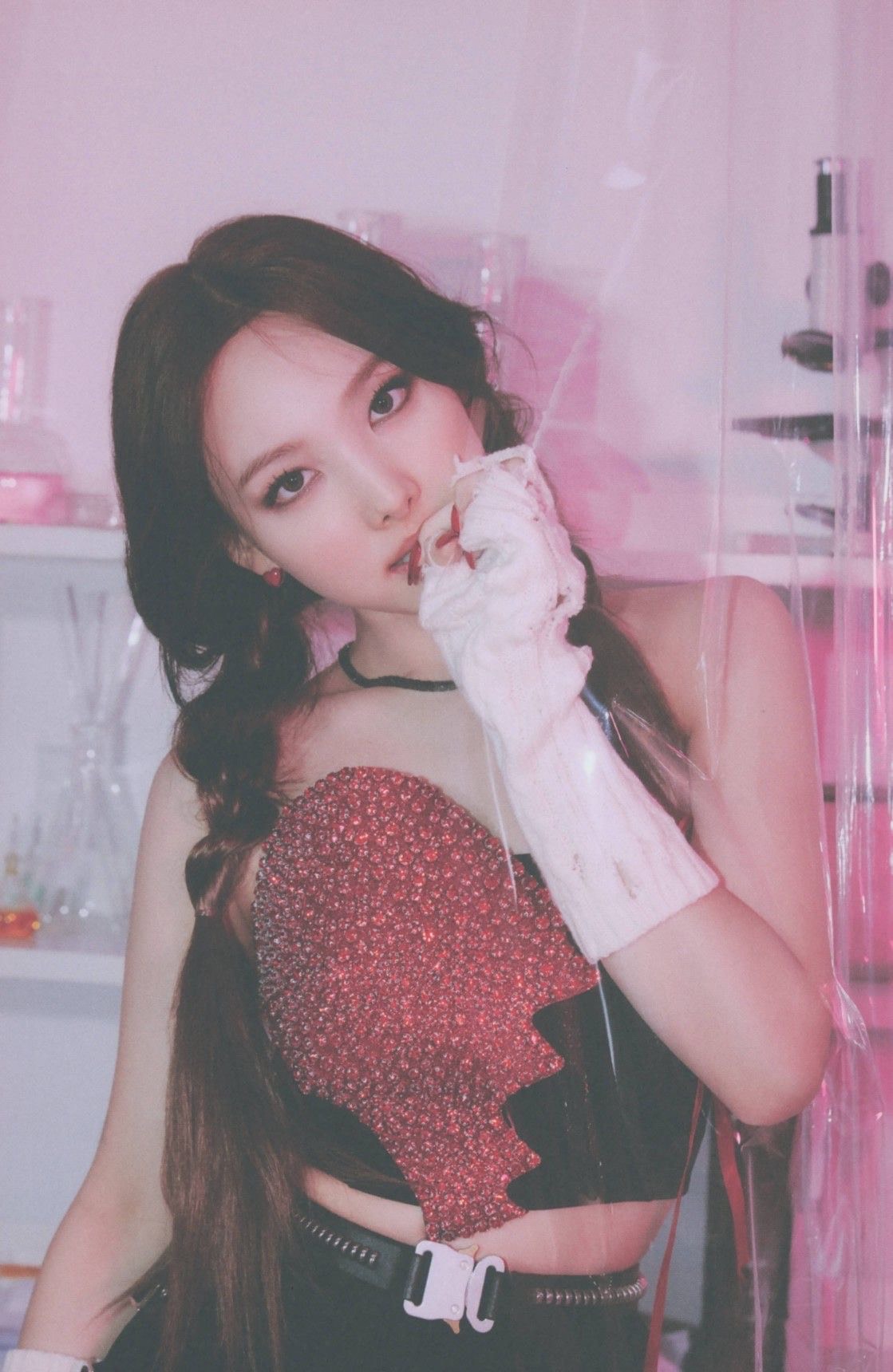 k-pop, 9 female vocals, girl group, R&B, alternative pop, and atmospheric electronic sounds, giving it a darker and more mature vibe compared to aespaās louder hyperpop tracks, The production features smooth synth pads, deep bass lines, subtle trap-inspired percussion, and airy background harmonies that create a moody, almost hypnotic atmosphere, There are minimal but sharp drum patterns that keep the rhythm controlled and confident rather than explosive, The vocals are layered in a soft yet intense way, emphasizing emotion and tension instead of high-energy power, Overall, the vibe feels possessive, sensual, mysterious, and confident ā like quietly claiming something (or someone) as yours without needing to shout