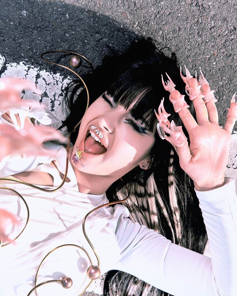 5 female vocals, Korean, kpop, Dreamy underground trap production with soft ambient layers and a nostalgic internet-era mood, Fast-paced breakbeats inspired by drum & bass blend with airy synths, distorted textures, and chopped digital vocal fragments, The sound pulls from indie cloud rap, UK club rhythms, and moody vamp aesthetics, creating a hazy early-2000s online vibe