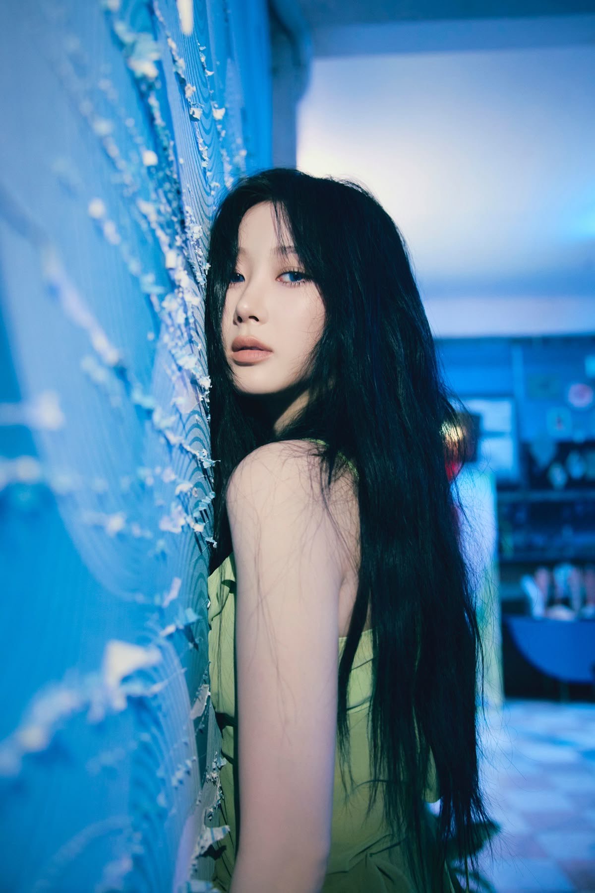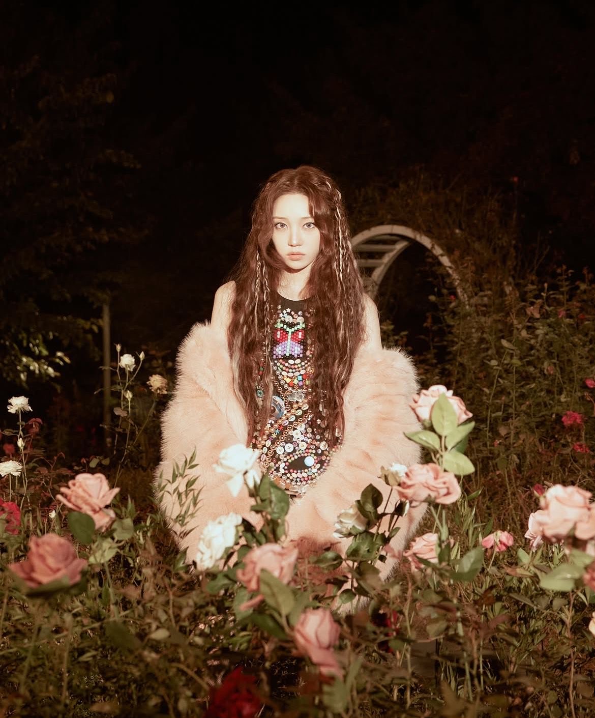 Female solo, kpop, Alternative R&B, dark pop, atmospheric soul, downtempo groove, minimal piano motifs, loāfi bass, subtle percussion, ambient synth pads, echoing electric guitar accents, layered vocal harmonies, whispery falsetto, breathy adālibs, moody and introspective vibe, sensual yet restrained energy, smoky lateānight club atmosphere, intimate and emotional tone, seductive yet cool performance presence, polished production with cinematic depth