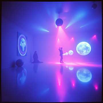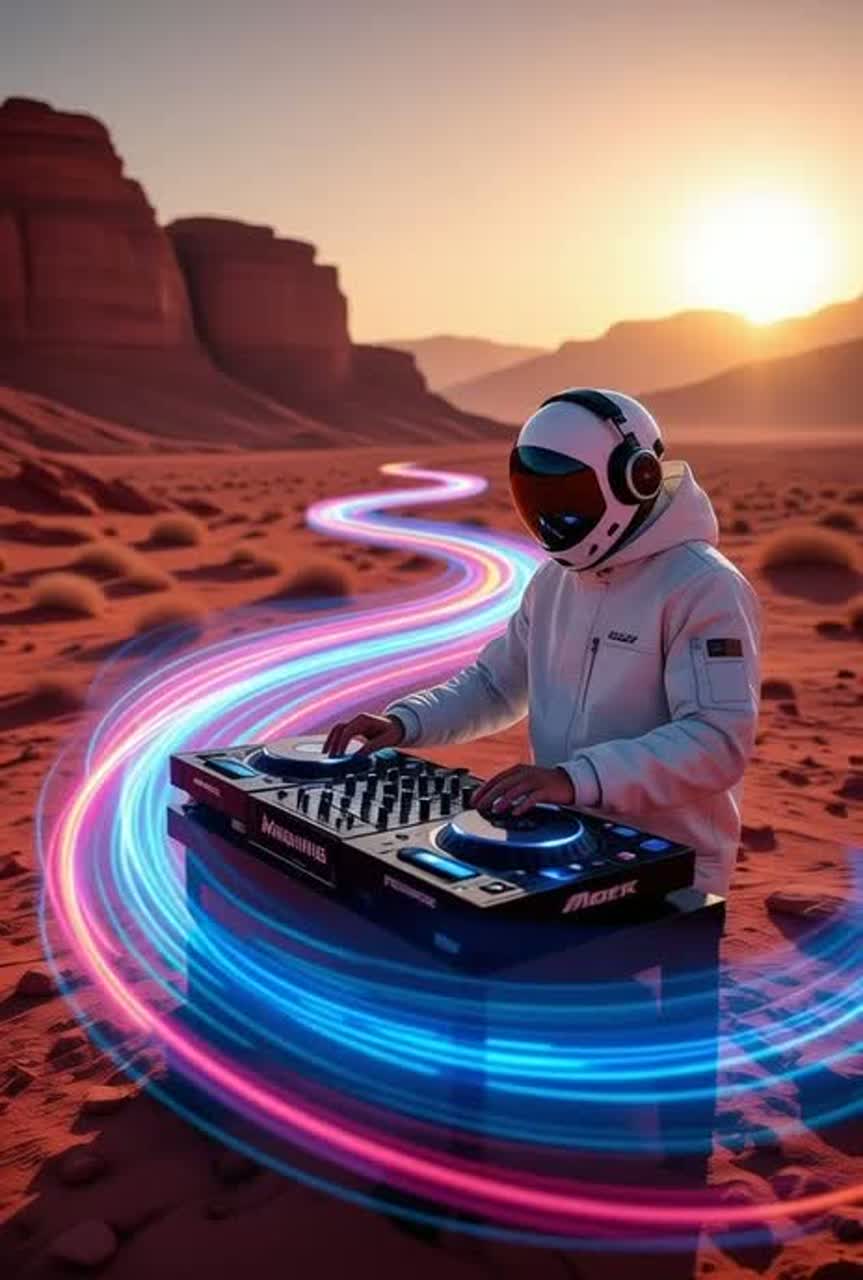 confident, mysterious, euphoric, Analog funk bass with quantum-resonant overtones Holographic talkbox vocals with shimmering reverb tails, Afrobeat percussion blended with synthetic alien drums, Wah guitars filtered through space-delay