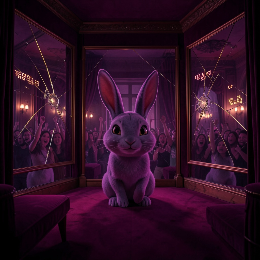 baile funk, 104 BPM, syncopated tamborim, nylon-string guitar riffs, cavaquinho tremolo, sub-bass glide, hand percussion breaks, clipped vocal chops, bright synth brass, gated snare, call-and-response chorus, playful unease, minor key, halftime bridge, crowd chant hooks