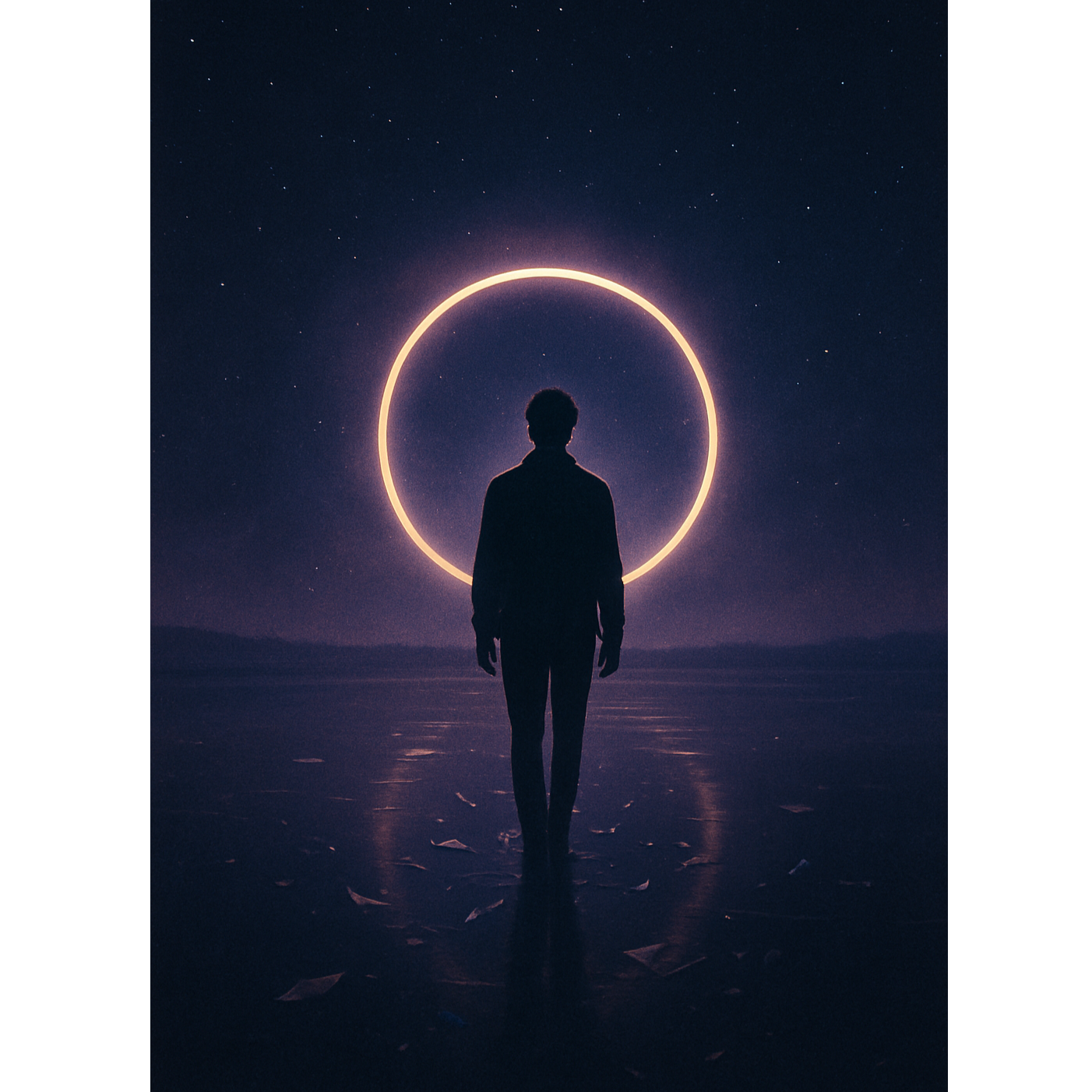 Create an ambient, emotional electronic track in the style of “Innerbloom” by RÜFÜS DU SOL, Slow build (100–110 BPM) with lush synth pads, atmospheric textures, and deep analog bass, Use tight electronic drums with reverb for a live feel, Emphasize space and minimalism, Male vocals delivered with vulnerability and emotion, Let each lyric breathe, with long instrumental sections, The mood should feel introspective, dreamy, and transcendental — like floating into the unknown, Themes of cosmic mystery, emotional surrender, and personal awakening, End with a slow fade and lingering synths