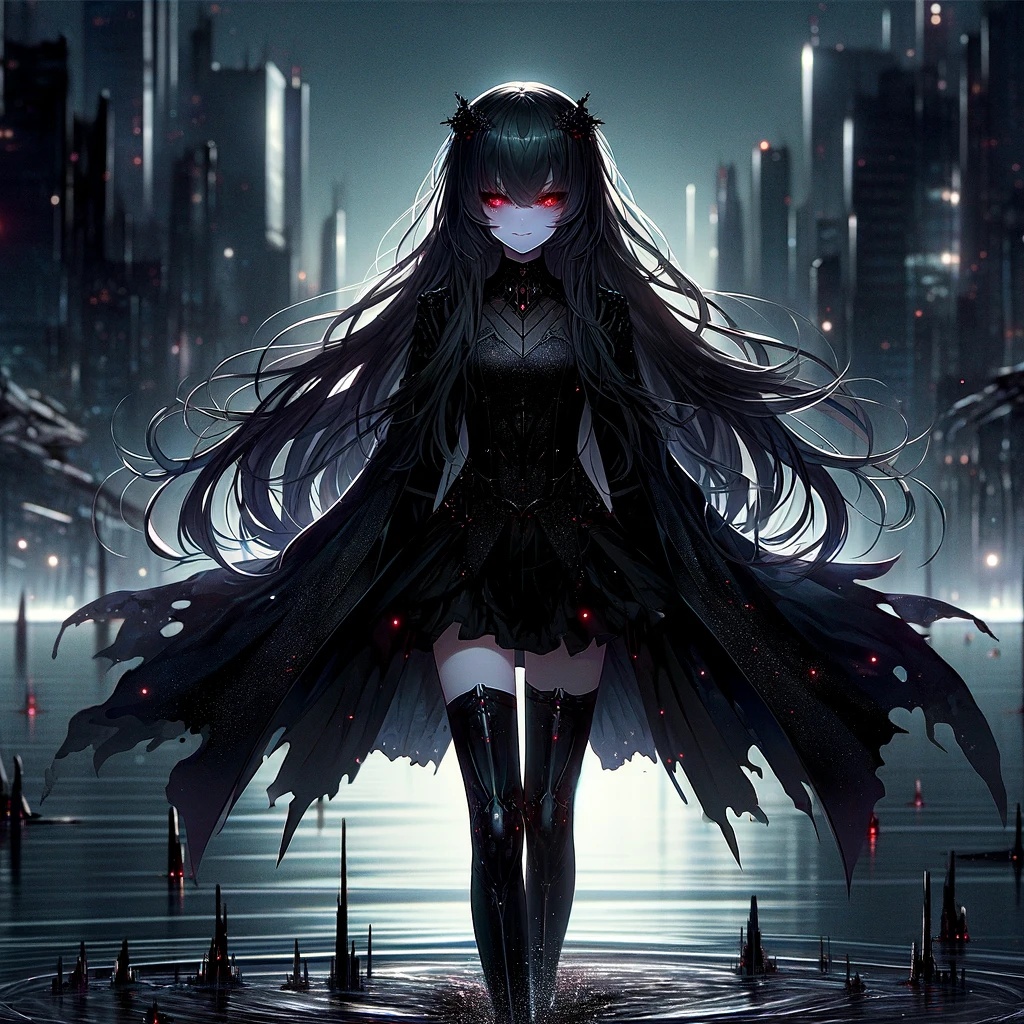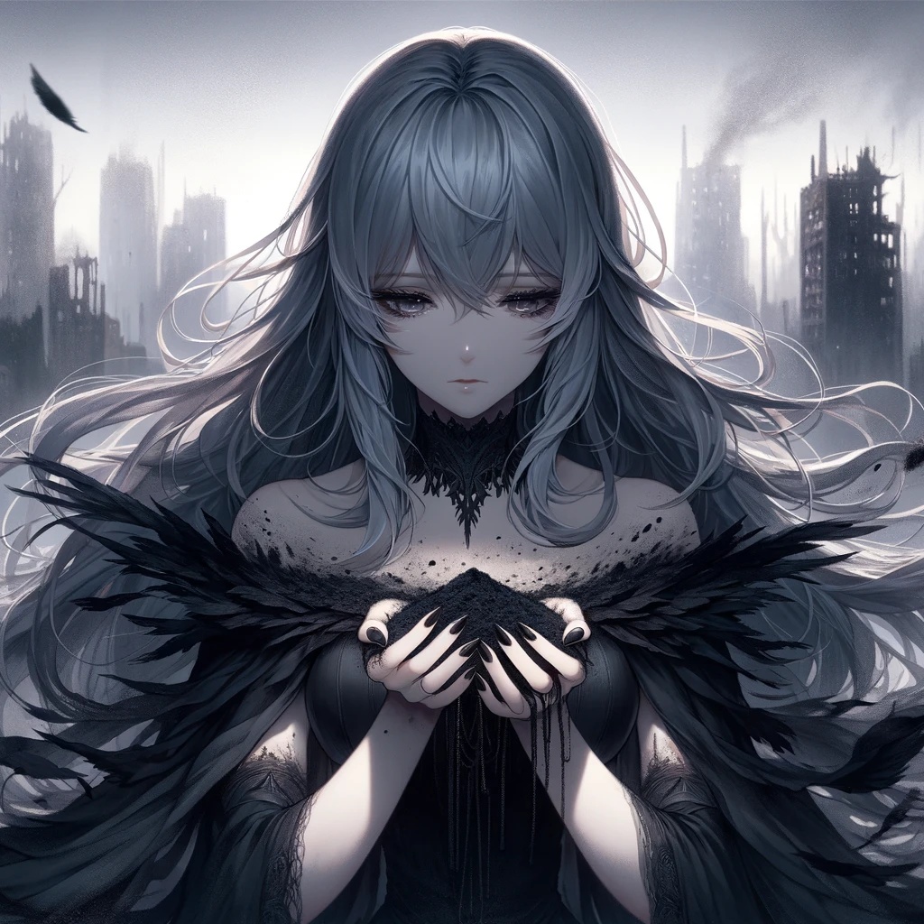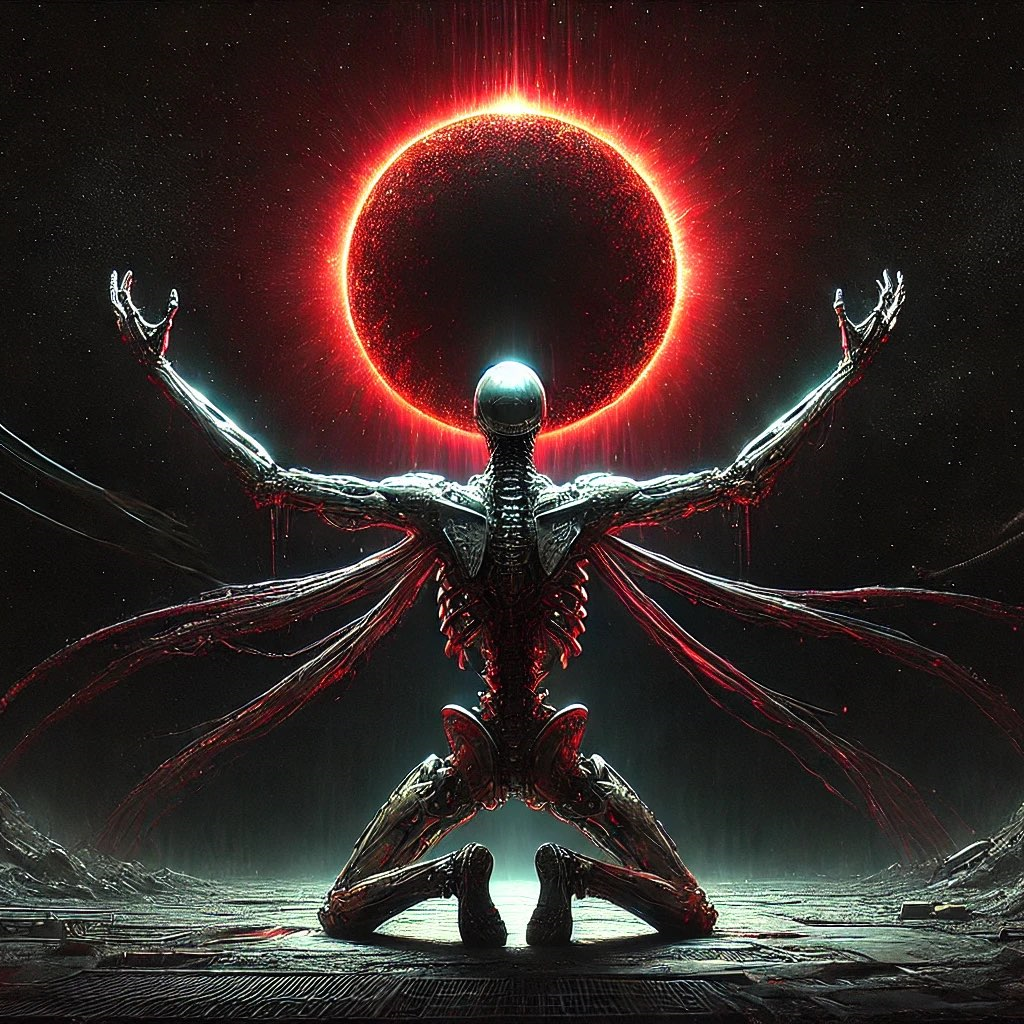 catchy, sudden intense electronic refrain, tense, emotional ballad, dark, dramatic, atmospheric, dynamic contrast, distorted synthetic robotic voice, powerful evil choir, catchy angelic dark vocaloid humming, melancholy, sad, depressing, breaks or dropouts, long sustained notes, layering