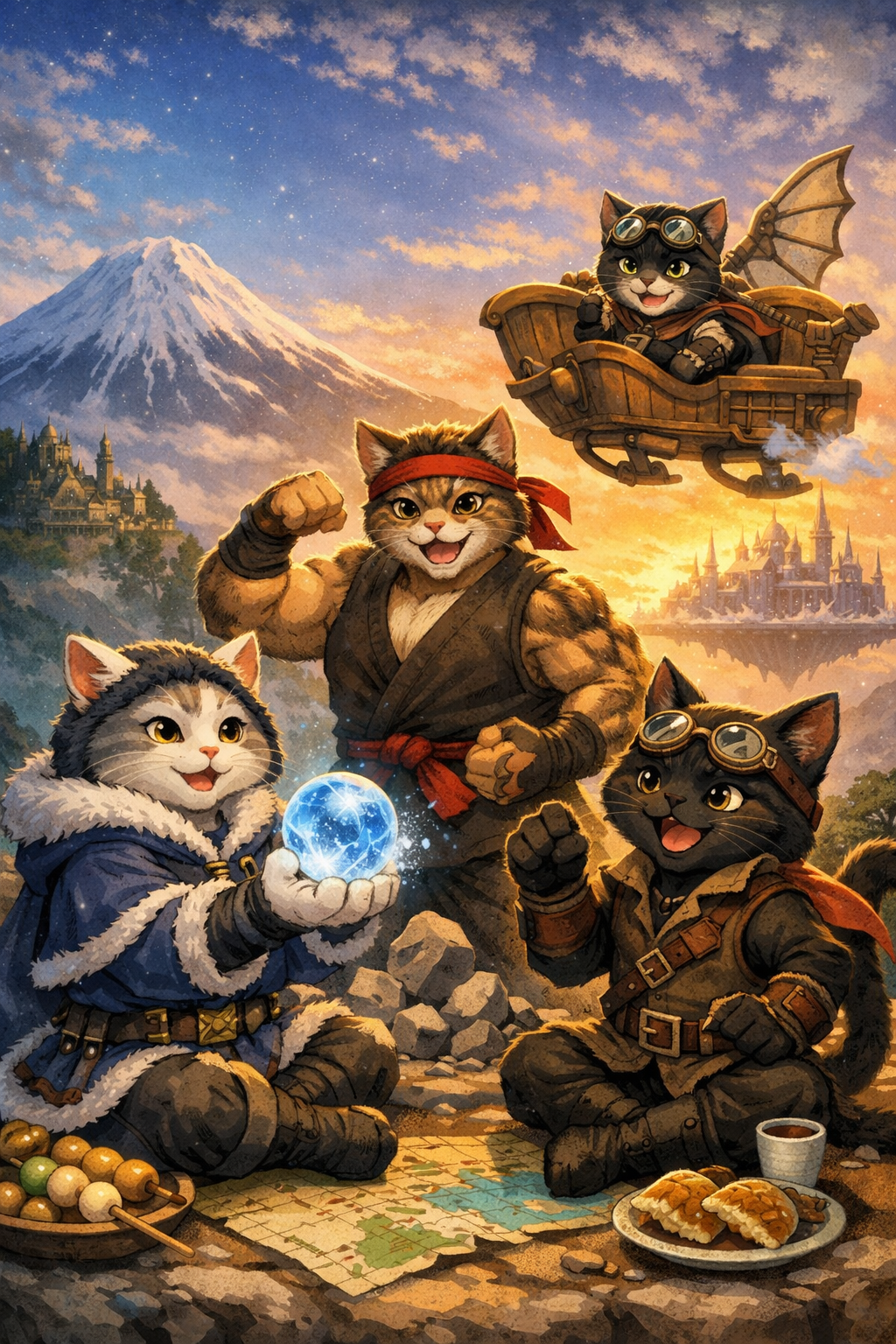 An energetic anime opening theme in the style of a heroic adventure, Fast-paced rock drums drive the rhythm, with punchy snare and explosive cymbal crashes, Bass is tight and powerful, locking the groove with deep presence, Guitars are bright and distorted, mixing percussive funk-style cutting in verses with soaring power chords in the choruses, Layered strings and brass stabs add cinematic weight, while playful synths bring sparkle and excitement, Vocals are male-led, in the style of an “anison emperor”—low, powerful, and emotional—delivering verses with dramatic intensity and bursting into soaring choruses with perfect pitch and dynamic projection, Lyrics blend Japanese and English, written as a heroic story of adventure, challenge, and triumph, Call-and-response shouts and gang vocals emphasize the live, shōnen-anime energy, Mixing is bold and epic: wide-panned guitars, bass and drums centered, choirs layered in the chorus, with reverb and delay creating a stadium-like scale