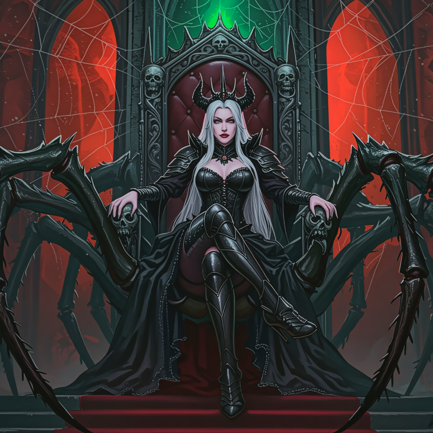 [Clear mix & mastering sound], Symphonic metal with full orchestral grandeur, 160 BPM, female lead vocal shrill and hysterical with soaring vibrato, tense and insane, church bells tolling through the mix, sweeping strings cutting like knives, brass fanfares distorted with menace, double-bass drumming relentless, choirs chanting ominously beneath, Verses dissonant and dark with minor chords, choruses explode into tyrannical glory, cinematic modulations surge like a queen drunk on power, The sound is manic, theatrical, authoritarian, and merciless