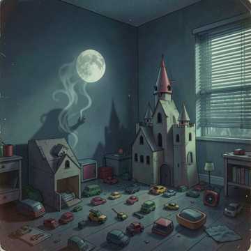 Fem vocal – deep and rough, gravelly preacher tone with slight distortion and tape saturation, southern accent, Second layer is the same voice but processed: quieter, panned, slightly delayed, sometimes reversed or filtered, creating inner voice effect, Vocals interact: call-and-response, interruptions, overlapping phrases, sometimes merging into one, Use stereo movement and subtle glitch, Outro: voices blend and distort, losing separation, unresolved ending
