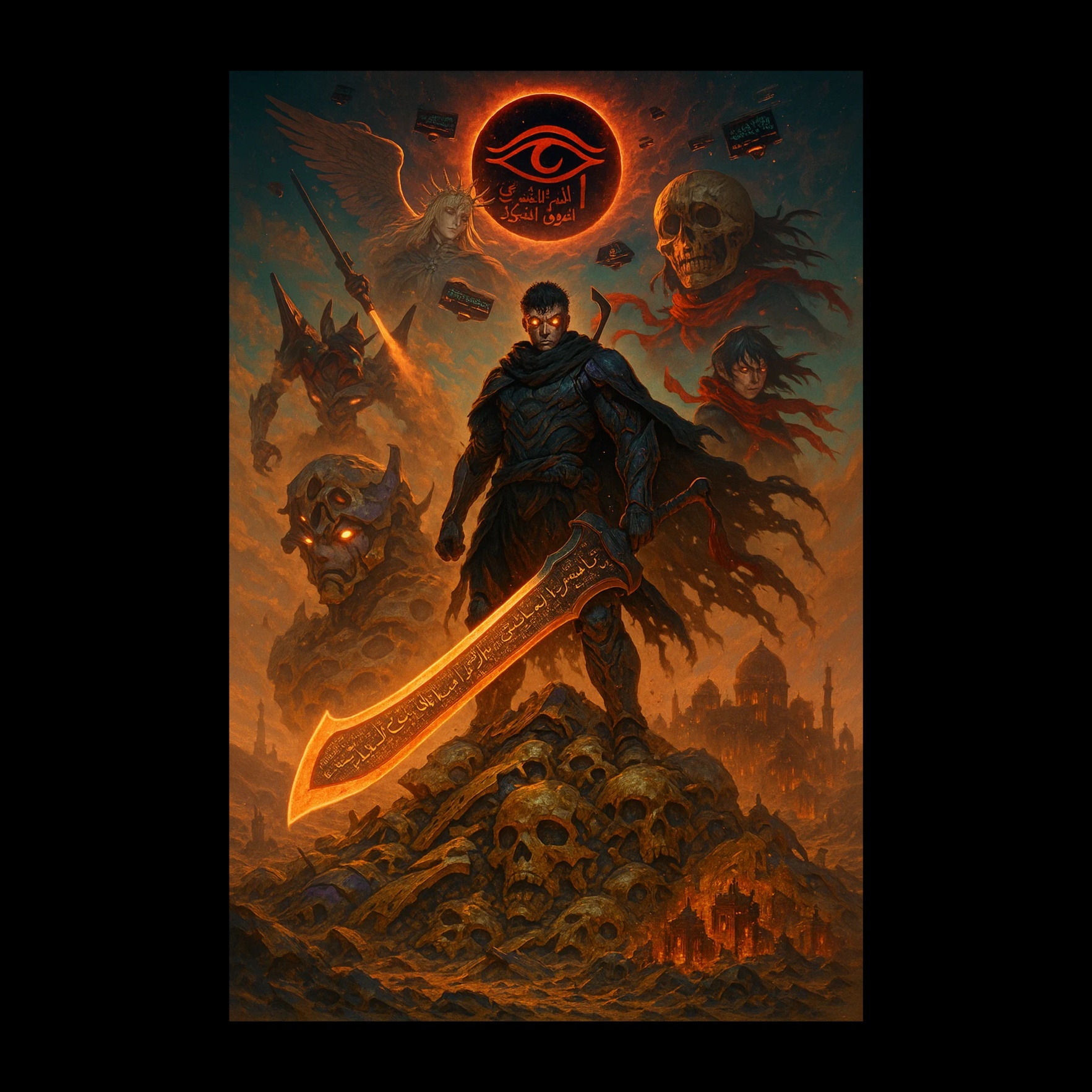 slap bass solo, Bright Brass, synths, A multi-part suite fusing Epic Cinematic Orchestral Pop and complex, satirical Progressive Rock/Jazz Fusion, complex arrangements with epic, cinematic vocal showcases, deep baritone vocal delivery, deep, resonant, bass-baritone vocal performance, falsetto, smooth vocals, vocal hiccups, baritone voice, saxophone solo, saxophone melody, 7/8 time signature verses, complex synth arpeggios, technical instrumental breaks, studio quality, Higher timbre elements, Overpowered elements, Over-compression, Over-limiting the master, disco, female ephemeral vocals, expressive lead guitar, saturated bright tone, sustain-rich, guitar sing with lyrical phrasing, combining legato runs, melodic hooks, wide bends, pinch harmonics, tapping, dynamic shifts, whammy bar phrasing, grooving drums and warm, melodic bass lines that lock in beneath the soloing, Arabic and Persian vocals