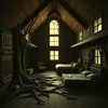 Norwegian black metal with slow crushing grooves, raw guitar tone, deep harsh vocals, and a cold rural atmosphere, Minimalistic riffing, bleak mood, and sudden tempo shifts between slow doom pacing and fast black metal sections
