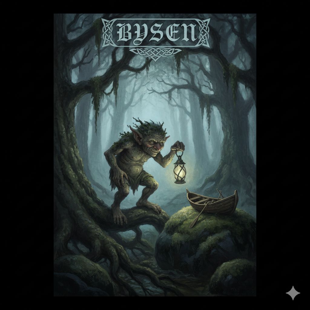 Folk Metal, fast-beat, traditional folk instruments, metal guitars, atmospheric, dark male vocalist, mythic