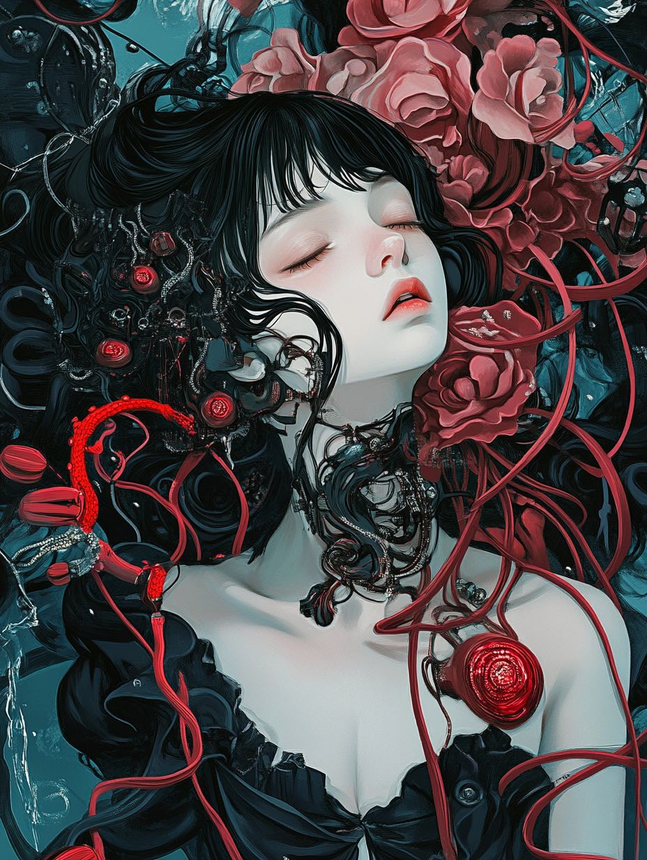High-energy Japanese EDM with dramatic and theatrical atmosphere, inspired by Ado-style performance, Genre: J-EDM / Dark Pop / Rock Hybrid, Sound: fast and dynamic rhythm, strong kick and snare, powerful bassline, and bright yet haunting synth leads, Add emotional piano layers, cinematic strings, and distorted guitars to create a dramatic and rebellious soundscape, The music moves between moments of quiet tension and explosive energy, with intense build-ups and powerful drops, Vocal: expressive female vocal with bold phrasing, wide emotional range, and charismatic tone — mixing whisper, shout, and melodic lines, Tempo: around 132–138 BPM, Mood: mysterious, rebellious, stylish, and emotional — like a dark stage show filled with passion, conflict, and awakening, The overall feeling should be theatrical and energetic, combining EDM power with J-Rock intensity and cinematic storytelling, Ideal for a scene that feels like dancing in the shadows under neon lights, where emotion and rhythm collide