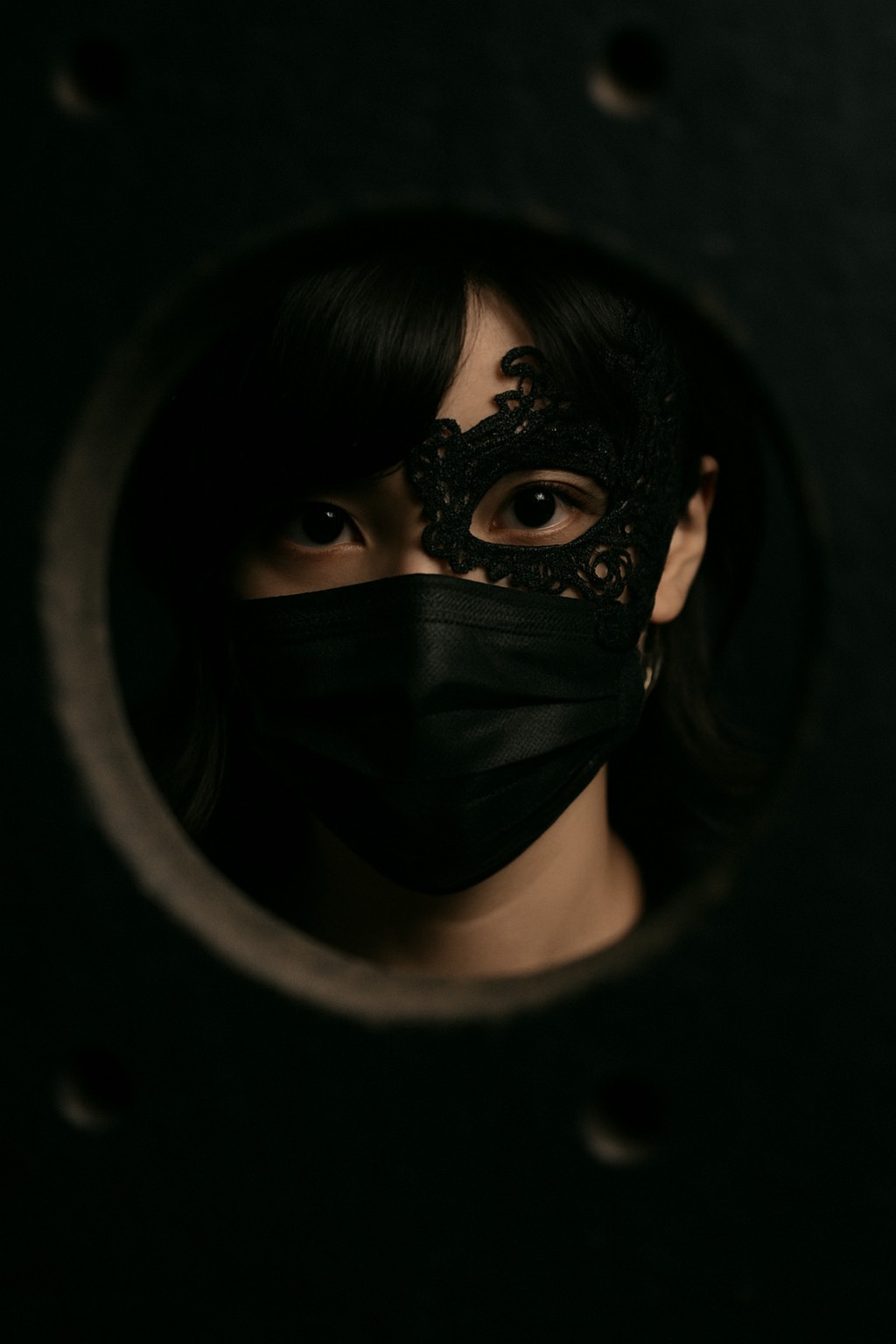 A Japanese high-energy dark rock song titled "ノゾキアナ" ("Nozoki Ana" / "Peephole"), sung in Japanese by a mysterious female vocalist in the style of Ado, It features rapid drum and bass rhythms, aggress
