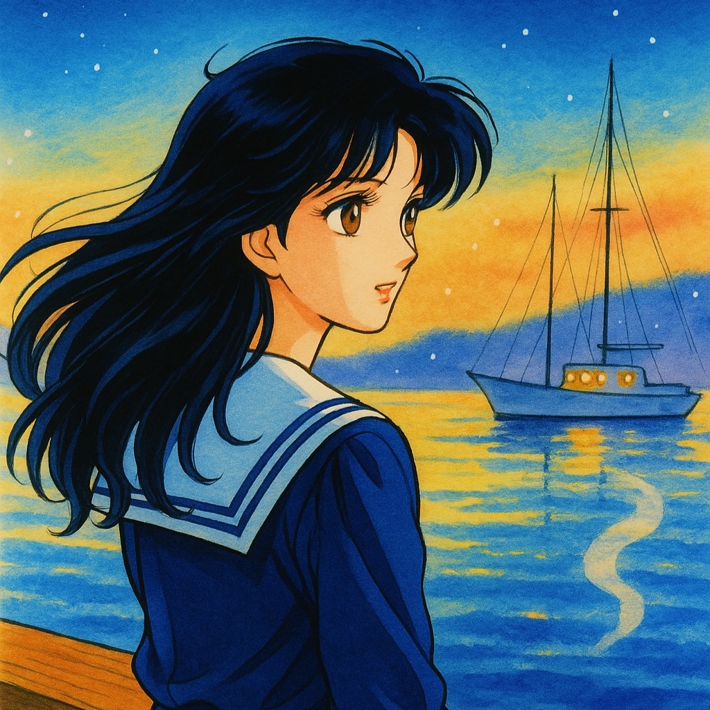 This piece opens with retro electric piano chords and delicate synth pads, evoking cinematic nostalgia, Gentle soft rock drums and bass support lush strings, while expressive female vocals sing with enka-inspired vibrato, Guitar flourishes and atmospheric textures merge kayōkyoku charm with emotional resonance throughout
