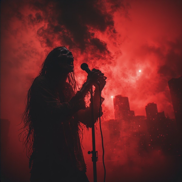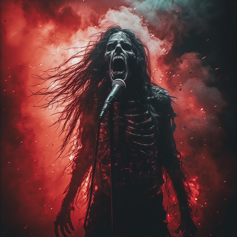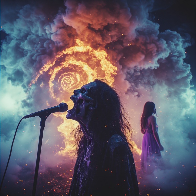 Aggressive Playful dark psychedelic raw gothic death metal / industrial metal layered / witch house ambient, dimebag darrel abbott complex raw aggressive metal guitar riffs and solos, goth mature deep male vocalist raw aggressive deep echoes / seductive - vocal effects / layered with guttural growls, fast double bass drums with a twist of viking traditional layered industrial, melancholic, brooding, depressing, goth opera space metal, more aggressive almost thrash metal like, more aggressive vocal fry, more aggressive, proud, dark underground, gutteral growls and vocal fry screams throughout, more aggressive rage, passionate sadness, space metal