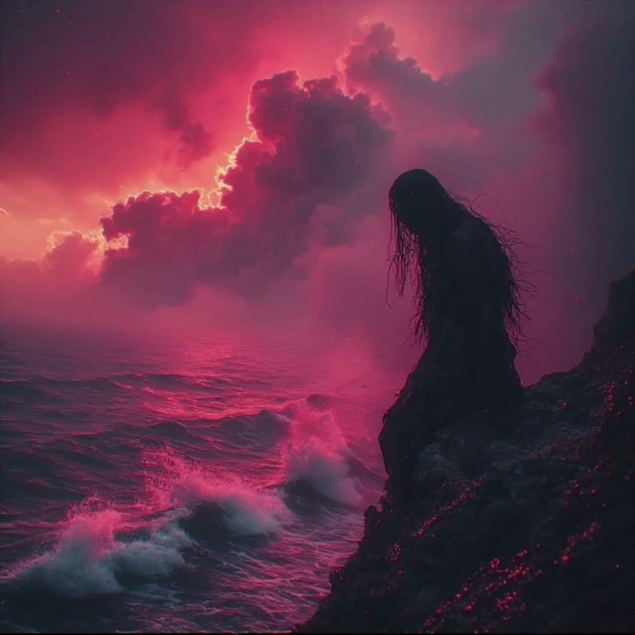Playful dark psychedelic raw funeral goth metal / industrial metal layered / witch house ambient, complex raw aggressive metal guitar riffs and solos, goth mature deep male vocalist raw aggressive deep echoes / seductive - vocal effects / layered with guttural growls, fast double bass drums with a twist of viking traditional layered industrial, melancholic, brooding, depressing, goth opera