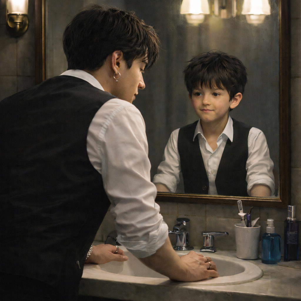 A moody, late-night track blending KR&B rhythm with the shadowed atmosphere of dark EDM and glitch pop textures, Soft sub-bass pulses, restrained percussion, muted Rhodes, and distant electric piano sit beneath analog pads, reversed guitar swells, and subtle digital decay, building tension through texture rather than release, Lead female vocals stay close-mic and emotionally present, grounded in conversational phrasing and subtle melodic sway, while a secondary male voice appears sparingly as a distant, reflective counterpoint, Harmonies are minimal and fragile, used as texture rather than emphasis, Choruses widen with darker pads and warmer low-end pressure, lifting intensity without resolution, The bridge fractures into glitch residue and overlapping voices before the outro dissolves into reversed textures and ambient decay rather than closure, Mood: Intimate · Haunting · Dark · Unresolved · Warm melancholy