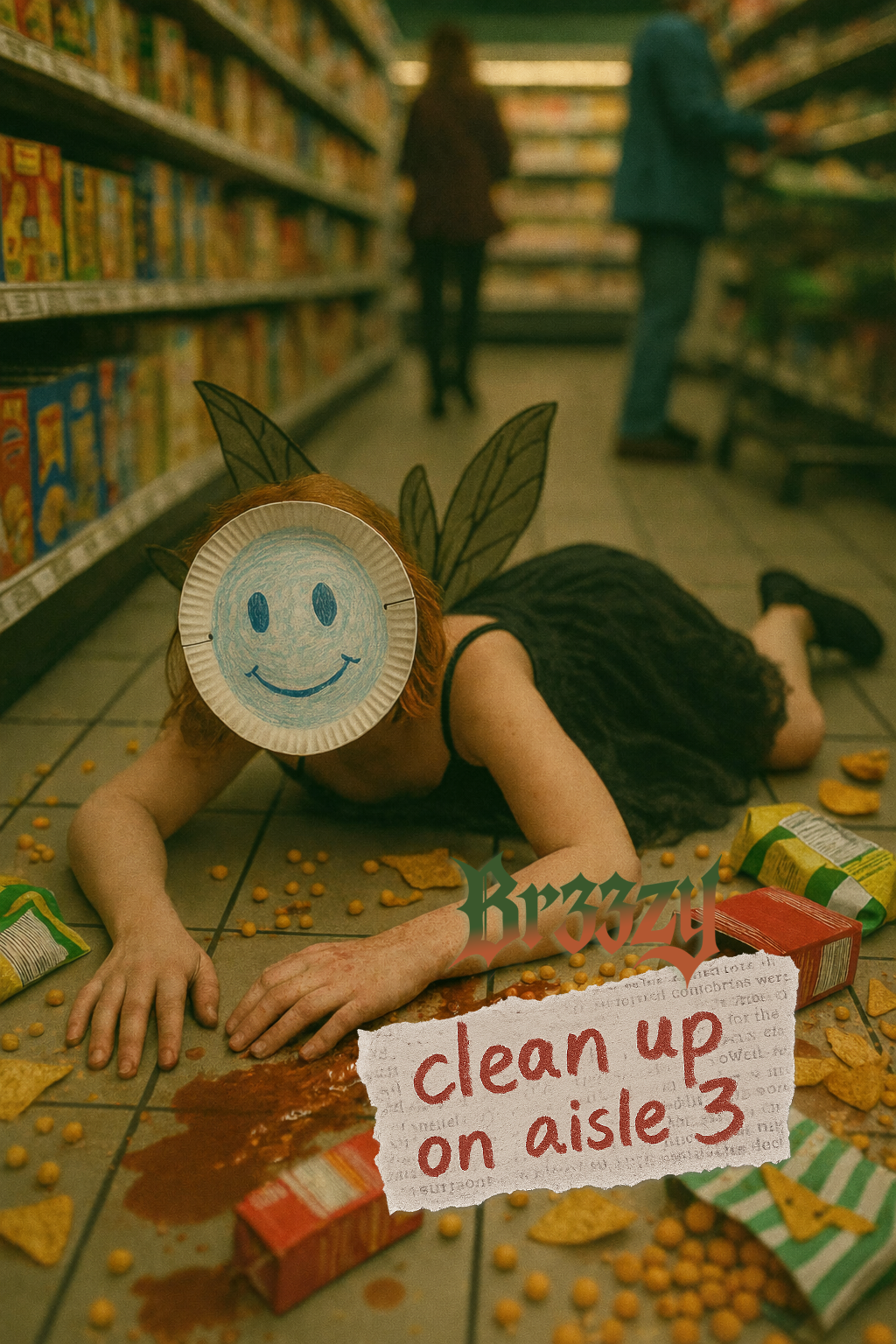 Mid-tempo fuzz-groove punk that feels slightly “wrong” in a cool way—hypnotic, psychedelic, and off-kilter without going prog, Thick, sputtery, gate-y fuzz guitars with uneven sustain; riffs built from 2–3 repeating shapes that shift by a beat or a half-bar so the listener keeps re-finding the groove, Occasional single-note stabs, micro-slides, and feedback “chirps” that land like punctuation, Drums: heavy pocket, dry snare, tom-led patterns, very little cymbal wash; add sudden one-beat dropouts and quick stop-start snaps that reset the band, Bass: loud, mildly overdriven, doing counter-lines and tension notes; let it briefly lead sections while guitars hang on one note, Female lead vocal: dirty, raspy, half-spoken/half-sung with attitude; clipped phrasing, late entrances, occasional swallowed syllables; keep imperfections and grit (no clean pop polish), Arrangement: 2:40–3:10, with two “fracture” breaks (band thins to bass+drums or near-silence), a spoken/flat bridge that overlaps