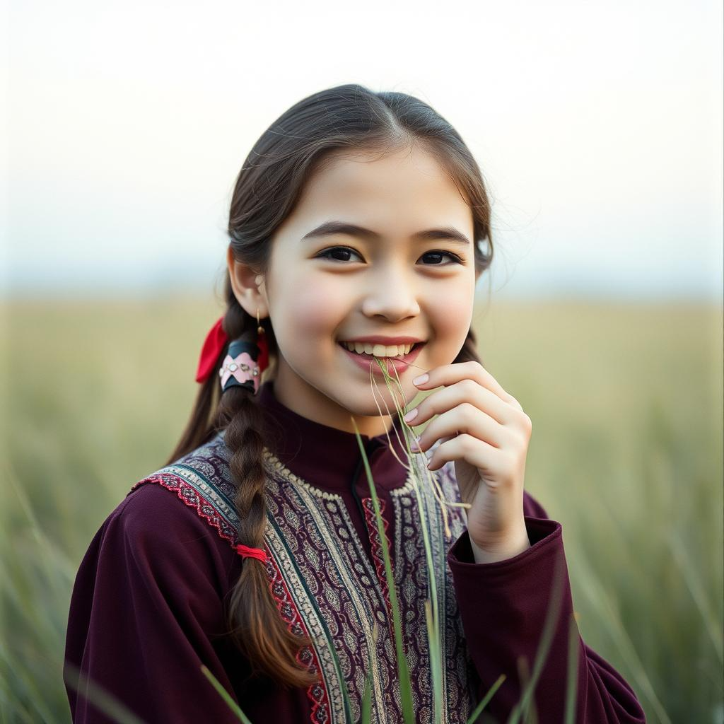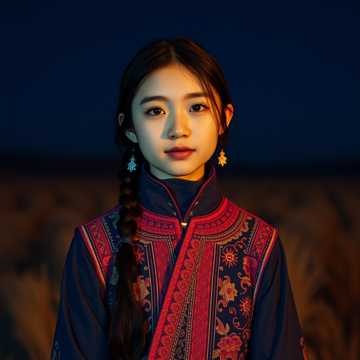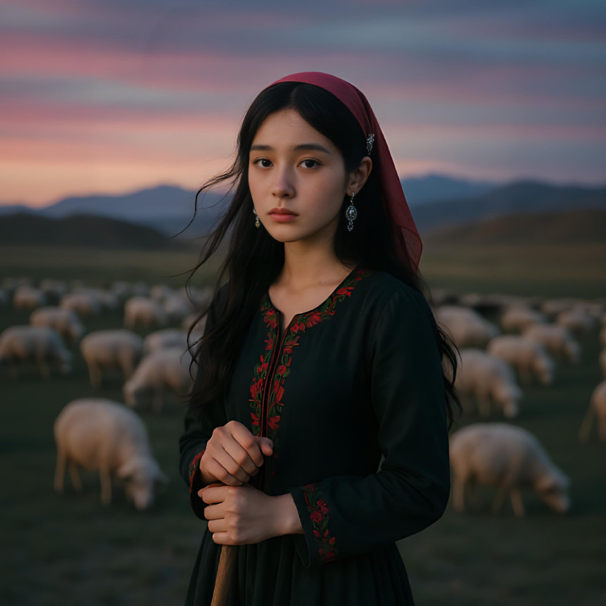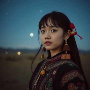 Story: On a starry night in rural China, a young girl sits on the grassland, yearning for her beloved far away, Gazing at the smoke rising from the distant village, her eyes filled with loneliness and solitude, Style: A majestic, dreamy, and ethereal electronic music reminiscent of the Chinese Uyghur night sky, complemented by soft, dark, and cool future bass, Vocals: A light, ethereal, and poignant young girl's innocent voice, with a sweet, high falsetto, dolphin-like high notes, catchy and exceptional technique, and a slight reverberation, Tempo: 90-100 BPM, medium tempo, Mood: Dark disappointment, melodic sadness, waiting and longing, Instruments: Pipa, crisp horse-head fiddle, ethnic drum beats, ethnic melody samples, spatial quality, soft future bass synthesizer, and electric vocal interludes, Arrangement: The overall arrangement is atmospheric and dreamy, flowing smoothly with clean transitions, creating an irresistible and melodic sound