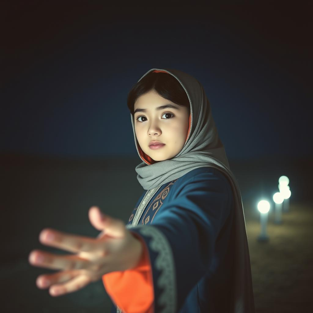 Uyghur Night Sky Divine Song, unique ethnic minority style, Miao, dreamy and soft future bass, confession, ethereal and sad female vocals, catchy, slightly dark in sadness, drum rhythm, sense of space