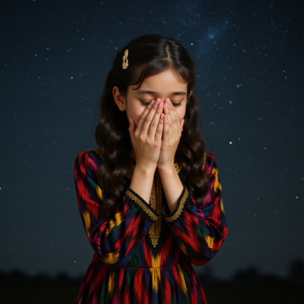 Chinese tiktok Uyghur night sky folk song, unique ethnic minority style, Miao, dreamy and ethereal, gentle female voice, revealing the emotions of not daring to express to the person you like, catchy, sad and beautiful, with a sense of space, making people feel irresistible, soft, ‑Low quality, ‑loud, ‑exciting, ‑no aesthetics, ‑rock