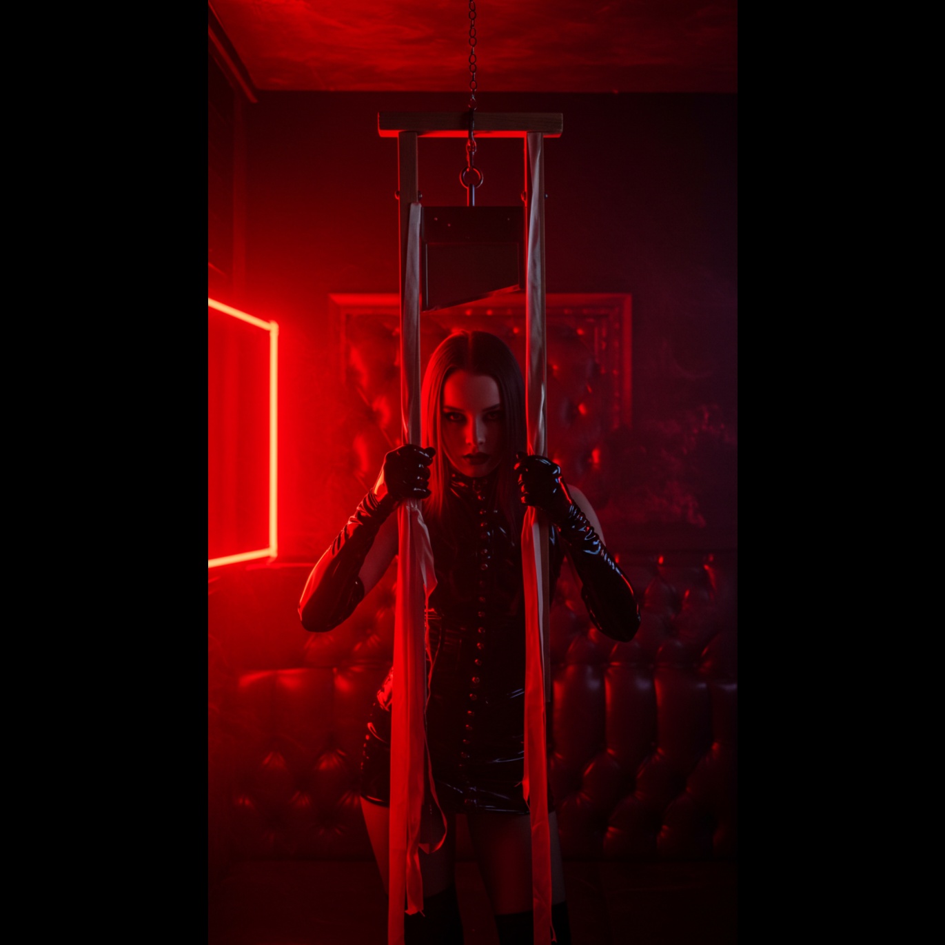 darkwave, industrial rock, electro-goth, synth noir, post-industrial, female vocals, breathy, sultry, whispered, spoken word, layered harmonies, haunting delivery, analog synths, distorted bass, reverb-heavy guitars, mechanical drum machine, industrial percussion, ambient pads, glitch textures, heartbeat kick patterns, delay FX on synth and vocals, dark, sensual, provocative, moody, cinematic, dystopian, seductive, mysterious, atmospheric, haunting