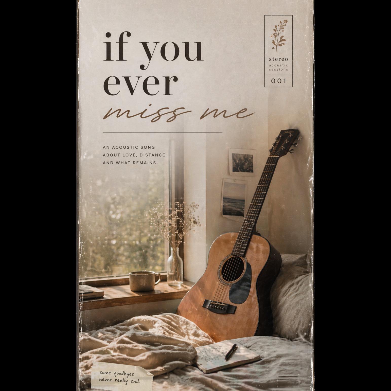 Soft pop R&B with a minimalist, late-night bedroom feel, Warm finger-picked acoustic guitar layered with subtle lo-fi textures, muted keys, and airy pads