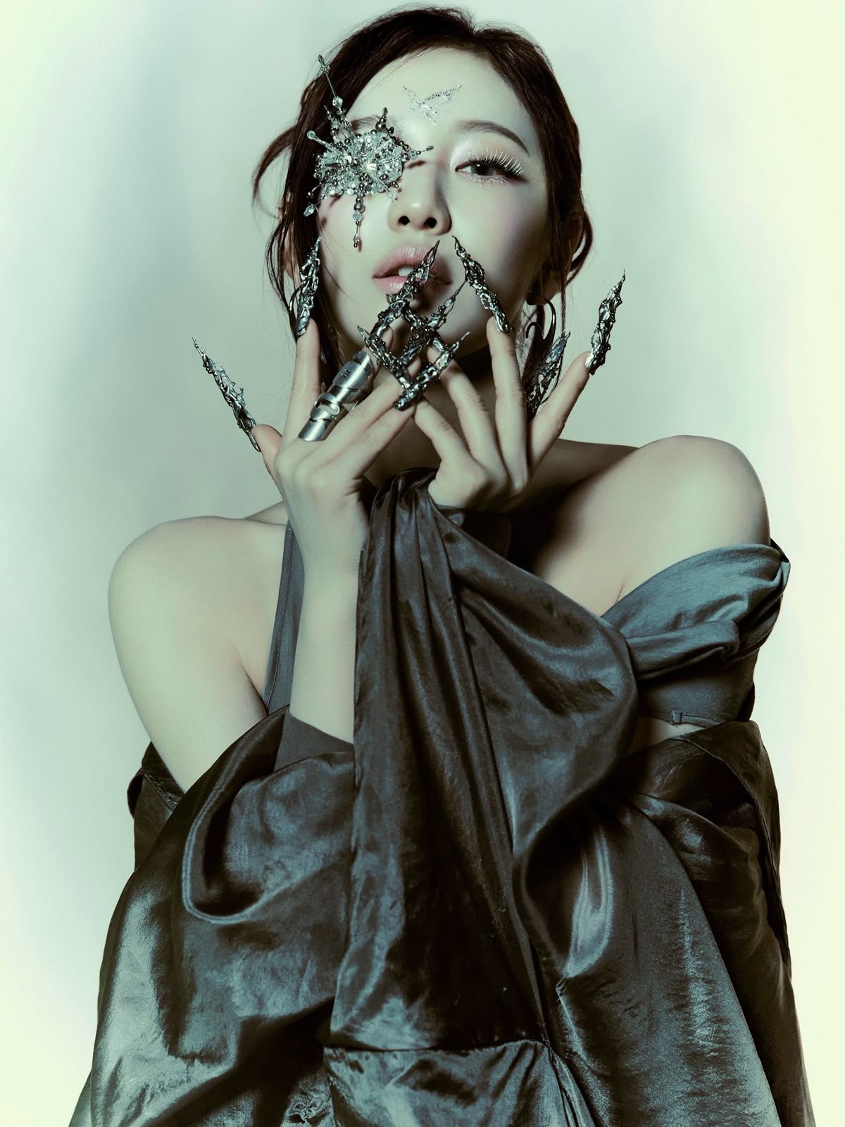 Strings and subtle orchestral textures, R&B, Alt K-pop, Ethereal synths, reverb-heavy vocals, soft harmonies, 5 female vocals, girl group, kpop, ethereal vocals female, mysterious, slower tempo, dark pop