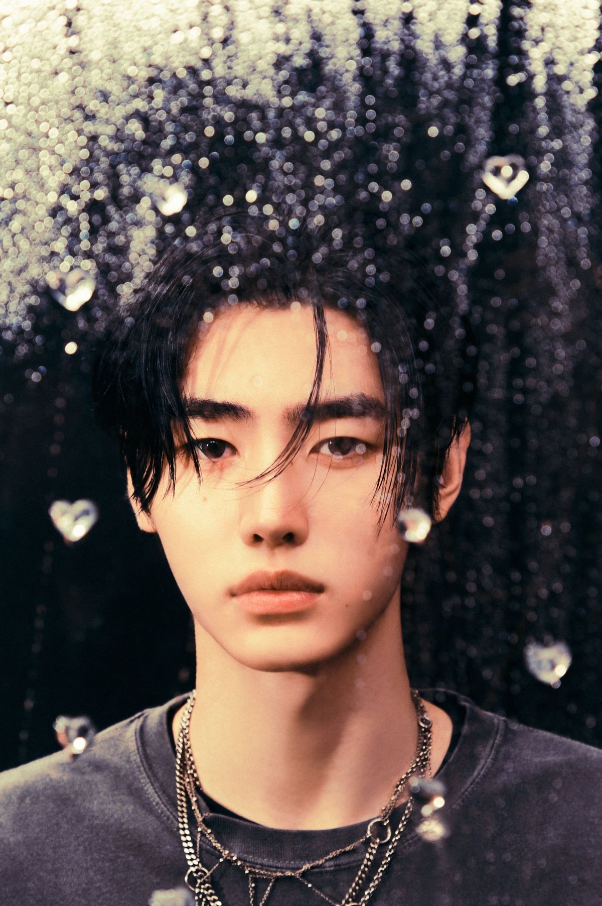 Kpop, ochestral, trap, 7 male vocals, powerful, beautiful, ethereal, powerful, mysterious, boy group, heavy strings, Geomungo, hypnotic, R&B track, with smooth, sensual vocals and a slow, pulsing rhythm that captures the intensity of desire, It also incorporates elements of dark pop and alternative pop, giving it a moody, atmospheric feel rather than a bright, upbeat pop sound, The production is minimalistic at times, letting breathy, emotional vocals stand out against a deep bassline and soft percussion, while still maintaining a polished contemporary pop structure