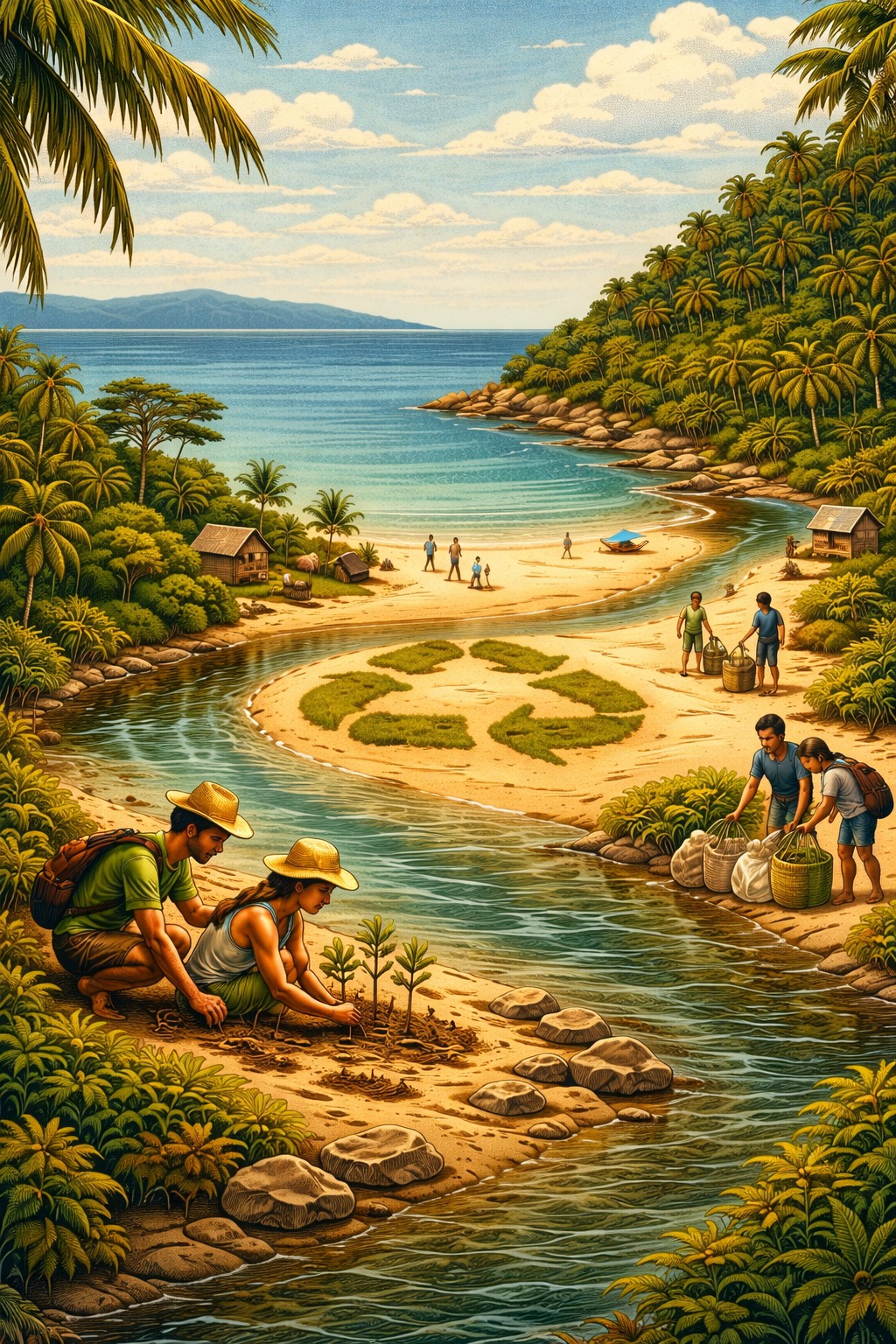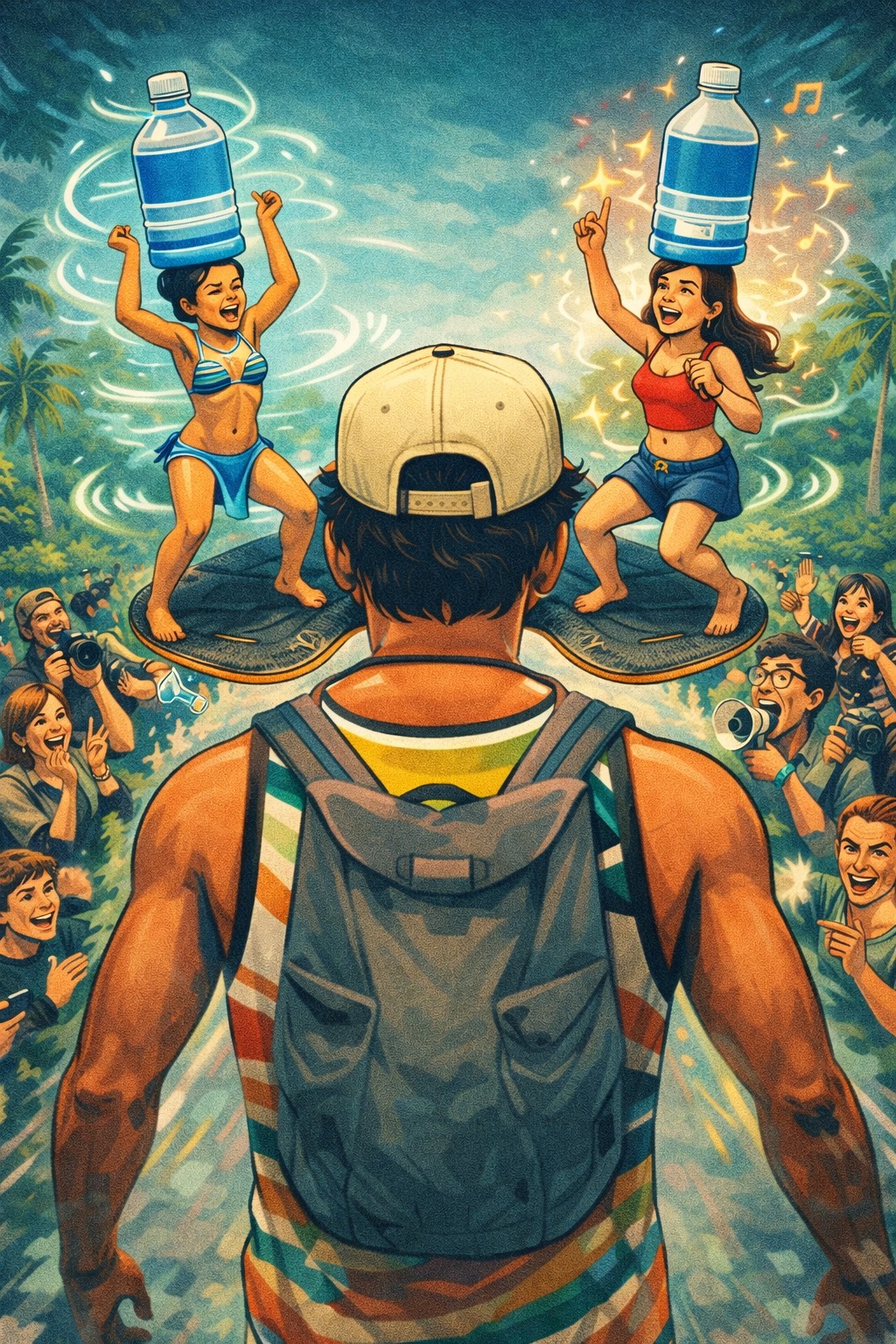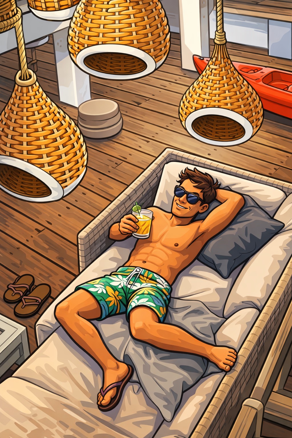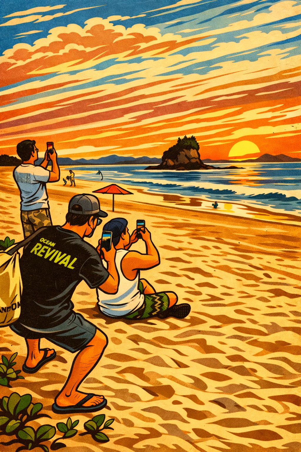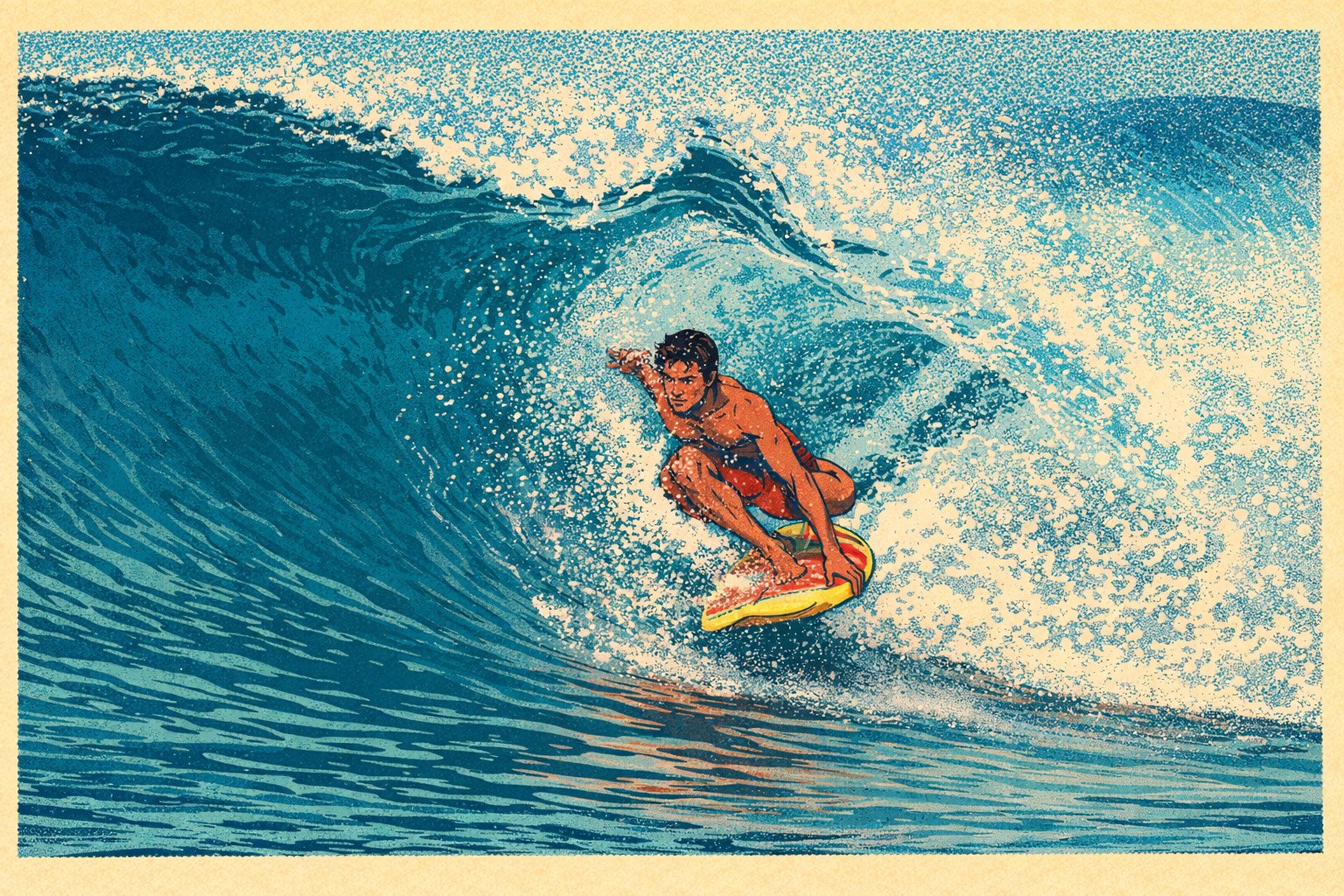 Surf chill, lo-fi, tropical vibe, 85–95 BPM, warm guitar, soft beat, male vocal, relaxed, dreamy, loopable hook, island sunset mood