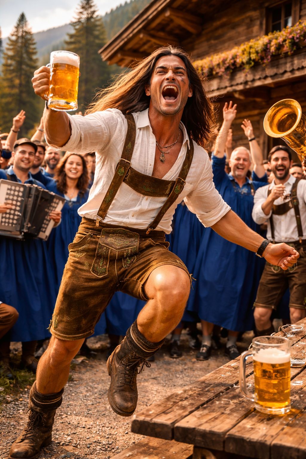 Heavy Hammond B3 Organ with rotating Leslie speaker, Soulful Church Gospel, Alpine Folk-Polka fusion, Large African-American Gospel Choir, Steirische Harmonika, Punchy Tuba bassline, 120 BPM, Call and Response, [Structural Yodeling only in Bridge], Professional Studio Production