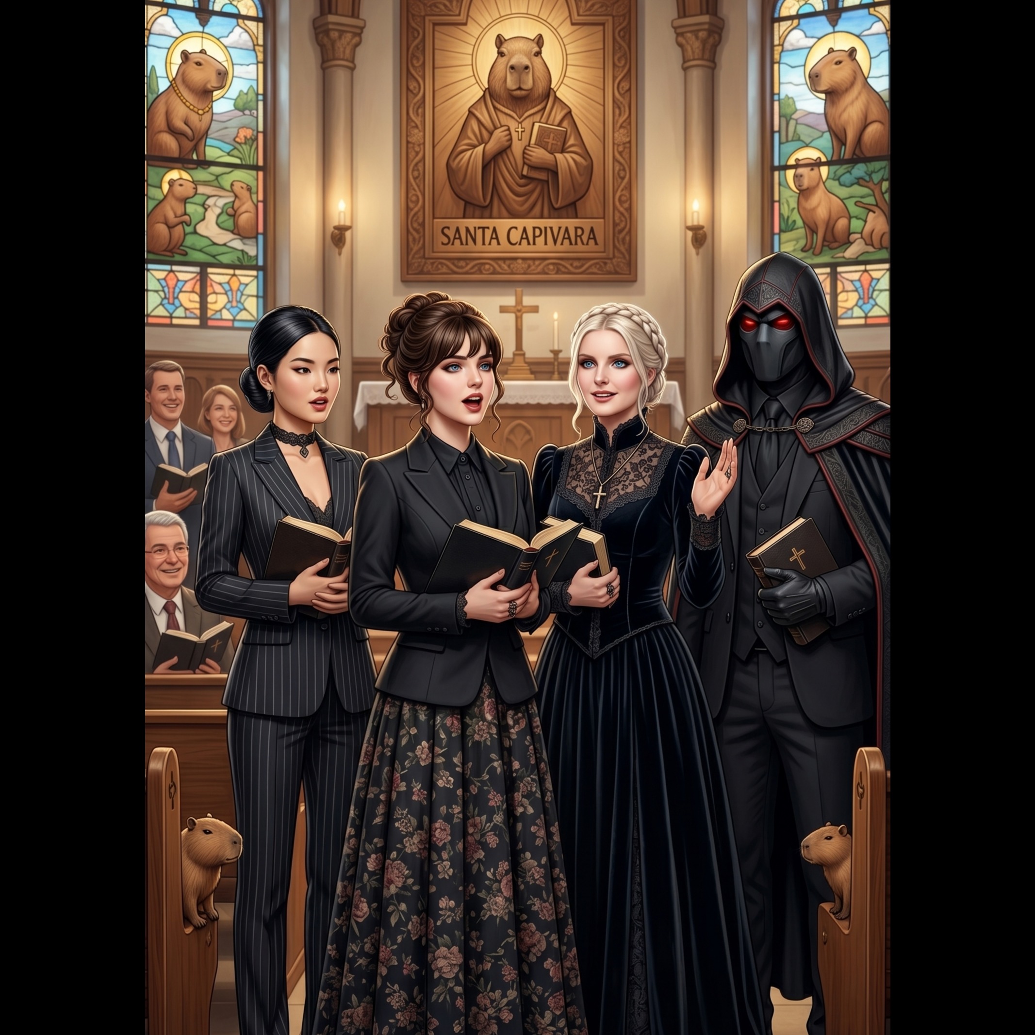 You are the Leader! Commanding 50-person choirs for the most absurd lyrics. Majestic Gospel & 80s Soul in any language (even Elvish!). Max 3 entries. High Notes, Low Standards! 🎤✨