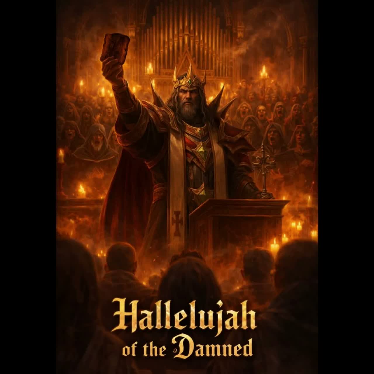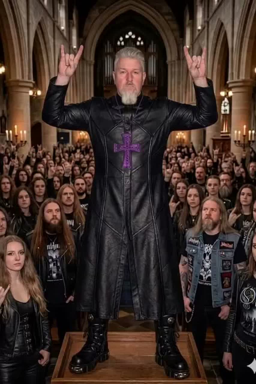 Heavy Metal Gospel, Ecclesiastical Gregorian Chant, Soulful Southern Gospel Choir, Symphonic Metal, Vocal/Instrumental Description: The track begins with a solemn, spoken-word Latin invocation over a low-humming Gregorian monk drone, It transitions into a high-energy "Heavy Metal Sermon, " The lead vocals are a charismatic, soulful baritone "preacher" style, full of grit and passion, The backbone of the song is a massive, jubilant Gospel choir providing soaring 4-part harmonies, hand-claps, and frequent "call-and-response" sections with the lead singer, Thick, melodic dual-guitar harmonies and a thundering double-kick drum rhythm section, The sound is anchored by a deep Hammond B3 organ and a grand Cathedral pipe organ, The chorus must feel like a "Sunday Morning" celebration—uplifting, epic, and loud, Includes a mid-song "testimony" bridge where the music drops to a rhythmic stomp and choir hums before building into a blistering melodic guitar solo and a final, explosive choir crescend