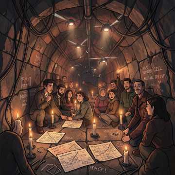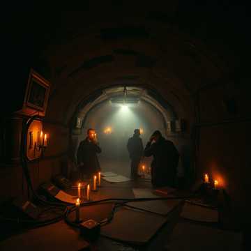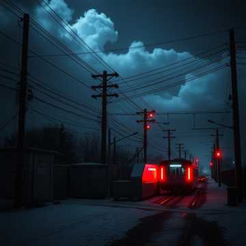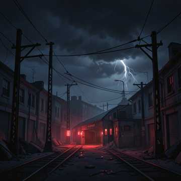 industrial dark ambient, heavy cold beat, sudden power loss sound, eerie silence, rumbling bass, distorted grid noises, desperate male and female vocals, sense of immediate chaos, metallic, ominous, foreboding, post-apocalyptic