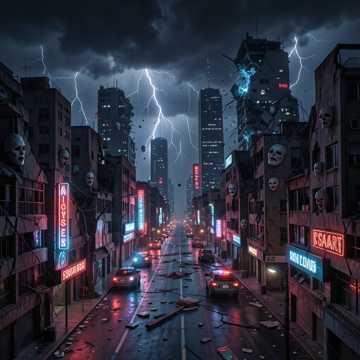 chaotic industrial electronic, urgent distorted drums, frantic synth arpeggios, desperate male and female vocals, screaming, whispers of fear, sound of distant sirens, urban decay, dystopian breakdown, relentless, driving tension