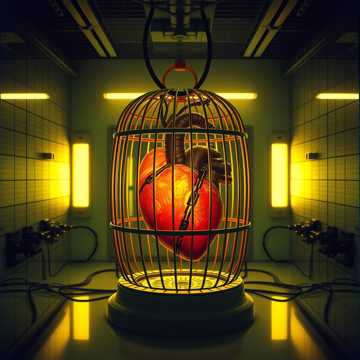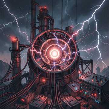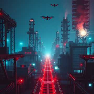 heavy industrial electronic, aggressive pulsating rhythm, chaotic glitch effects, sounds of power surges and explosions, cold male and female vocals, AI voice commanding, sense of futility, ultimate control, dystopian warfare, crushing defeat