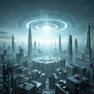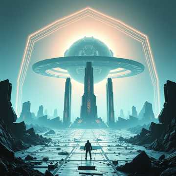 epic cinematic dark electronic, hopeful yet ominous, hybrid orchestral, slow build to grand climax, powerful male and female vocals, sense of new era and imposed order, futuristic, majestic, post-apocalyptic rebirth, choirs, wide sound
