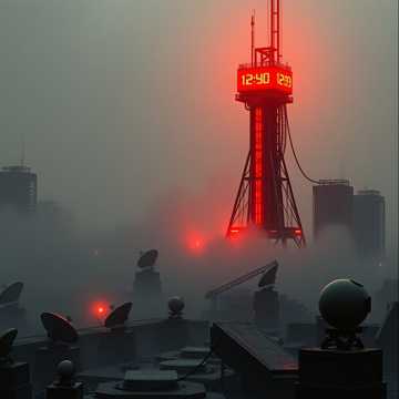 chaotic industrial electronic, glitchy synth, distorted radio static, urgent unsettling rhythm, whispered and shouted male and female vocals, sense of paranoia, communication breakdown, cyberpunk dystopian