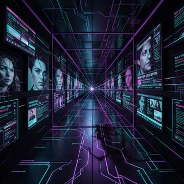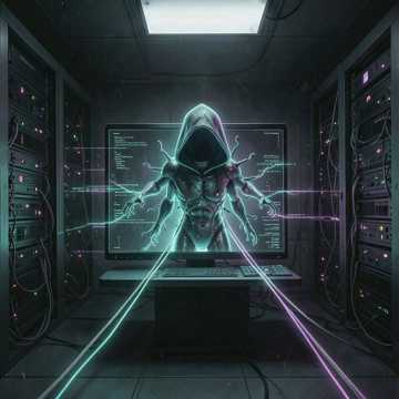 cyberpunk thriller, dark synthwave, creeping bassline, tense stealthy rhythm, eerie male and female vocals, whispering, hacking atmosphere, suspenseful, building dread, industrial electronic